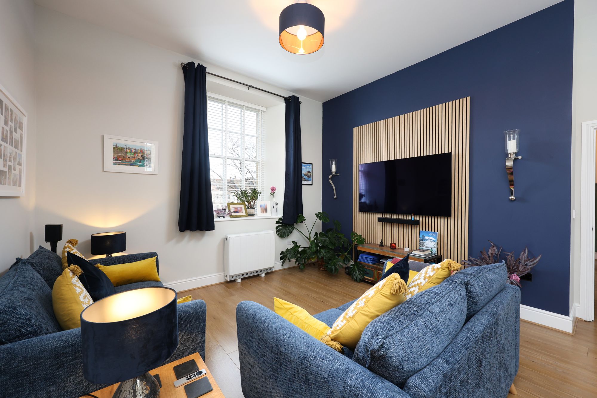 Bedroom two is located next to bedroom one at the rear of the property and again features a high ceilings and a large sash window