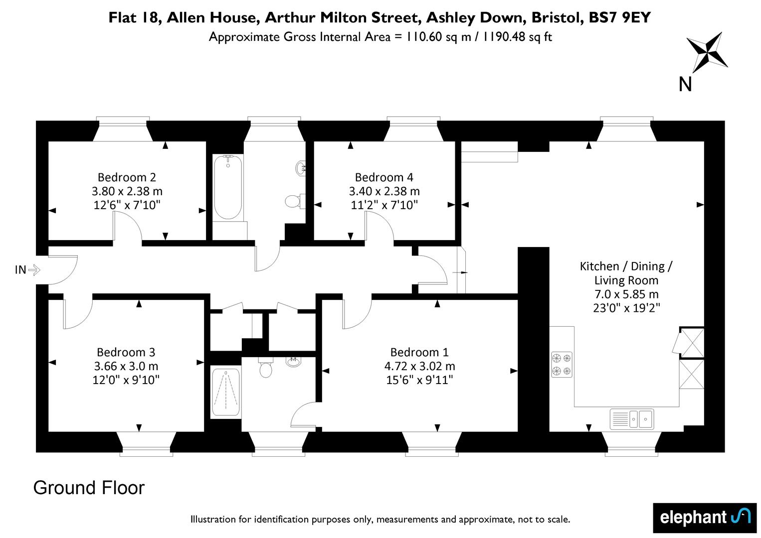 A light and bright ground-floor apartment set within the Allen House development in Ashley Down. This large four-bedroom apartment has its own private entrance, views out onto the communal gardens, and off-street parking.