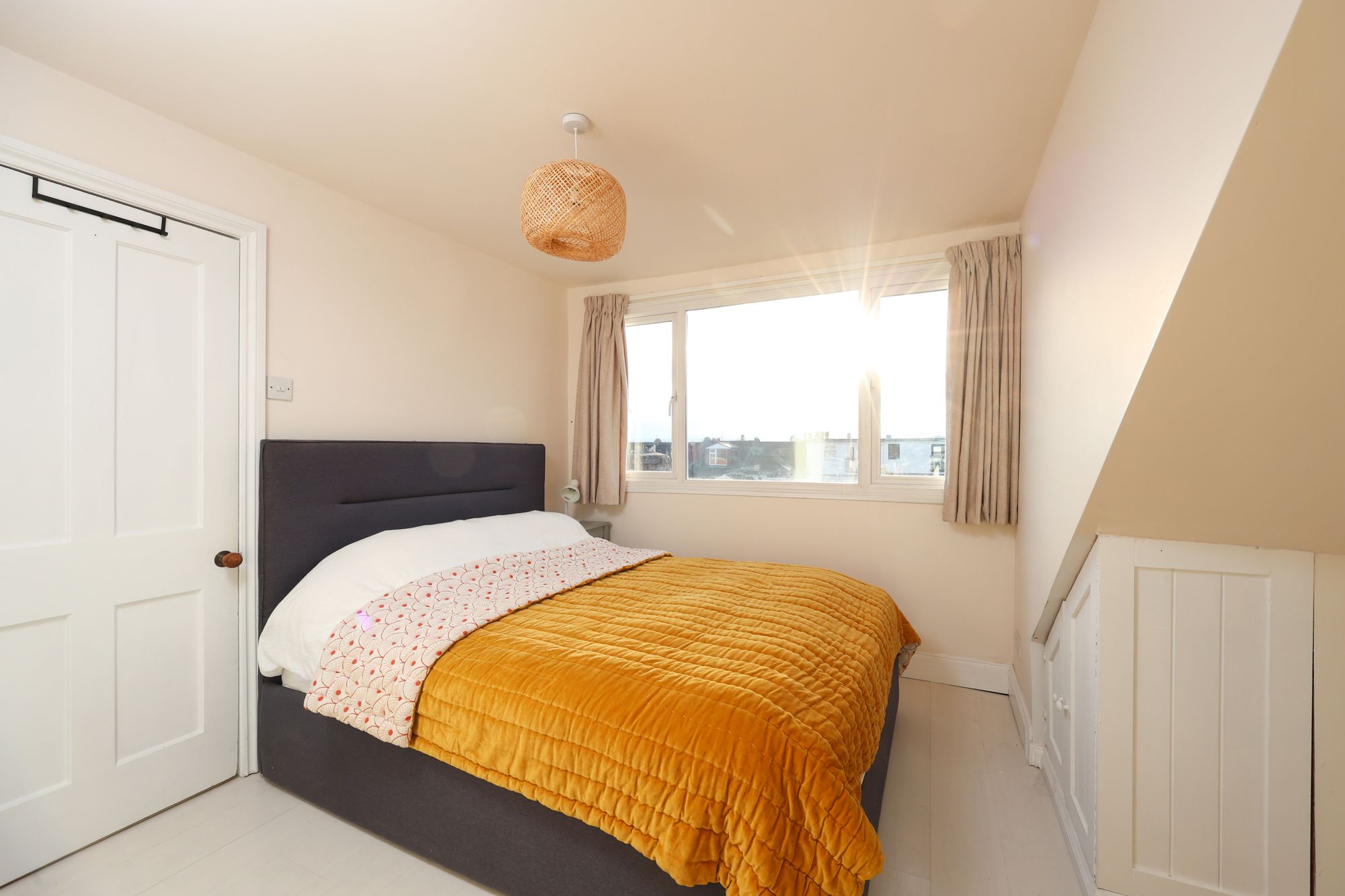 The stairs lead to the top floor where there is a another double bedroom and a study. The double bedroom spans the depth of the property, benefiting rooftops views and has access to eaves storage. Adjacent is bedroom four, which is currently occupied as a study, benefits a storage cupboard, a skylight window and access to eaves storage.