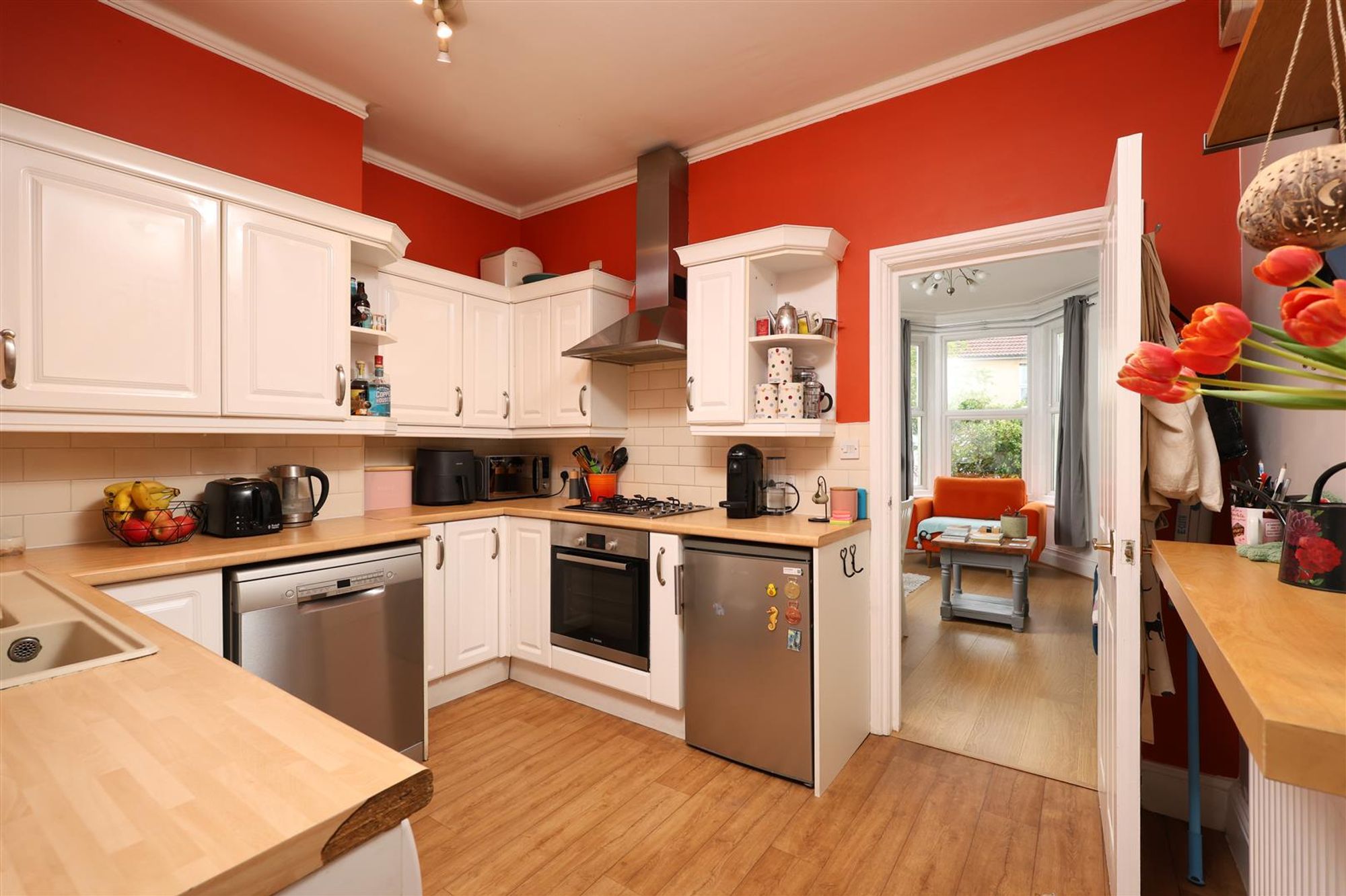 As you enter the property, you have a separate reception room with wooden flooring, a bay window overlooking the front garden and a fireplace. In the middle of the property is the kitchen, which features a range of wall and base units. An integrated oven and hob with extractor above, and under-counter space for dishwasher, fridge, freezer and washing machine.