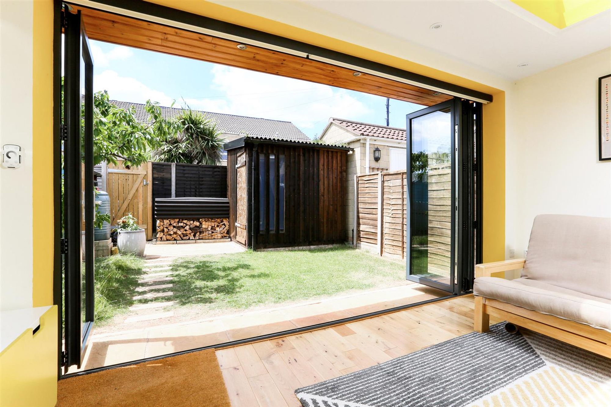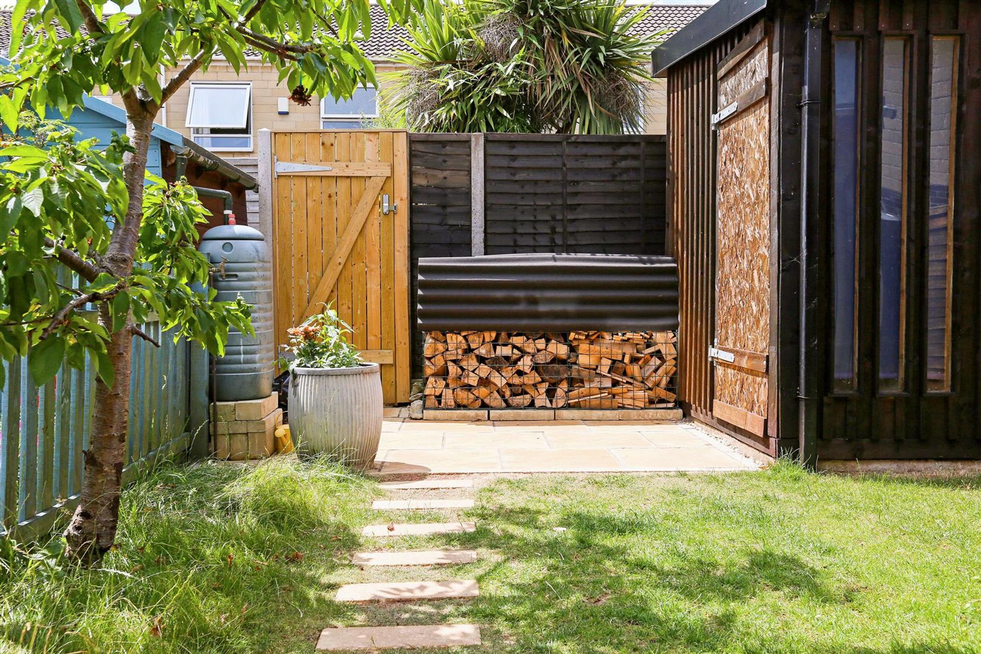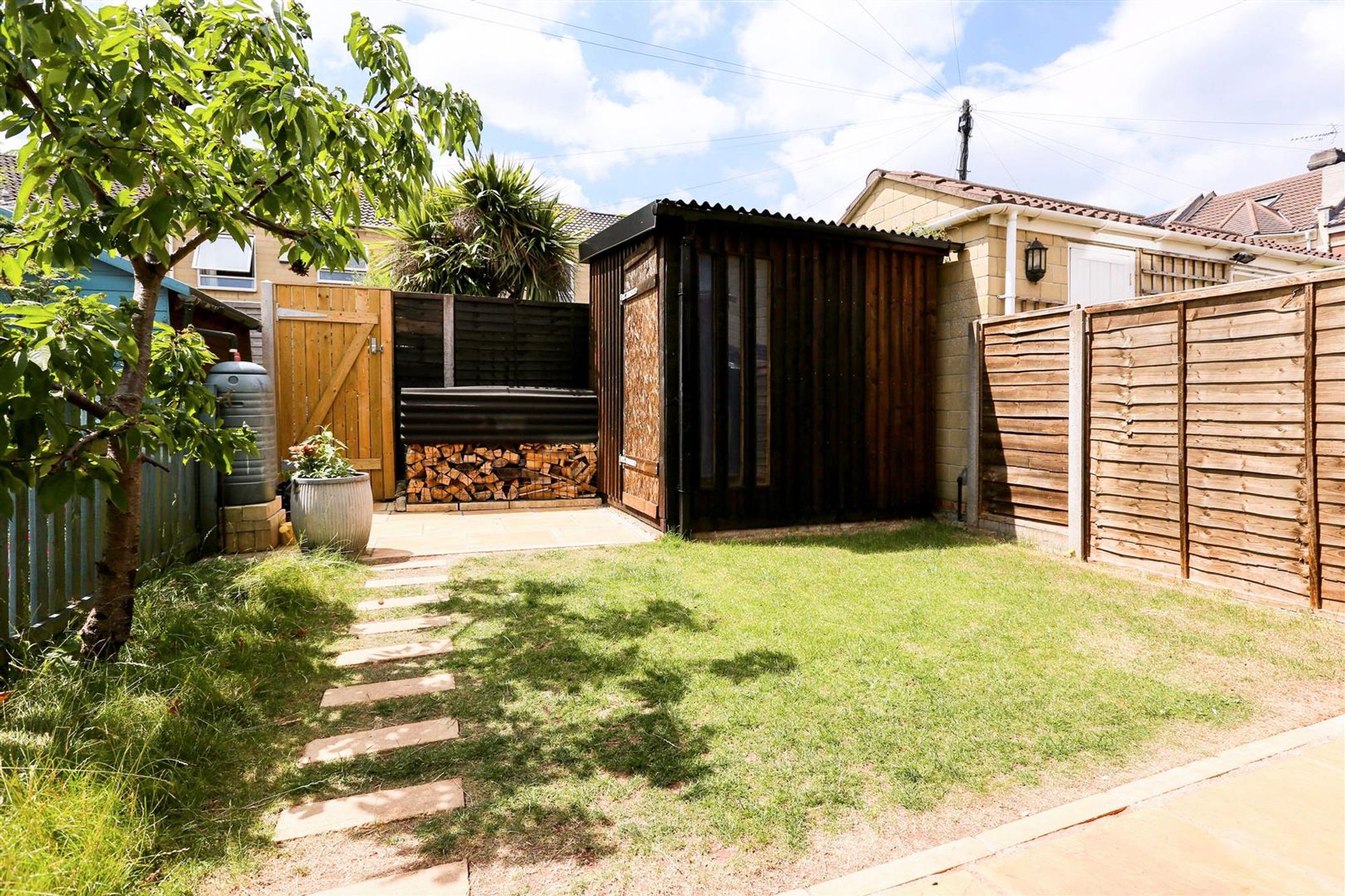 To the rear, a substantial workshop or outbuilding offers excellent scope for use as a studio, hobby space, or additional storage, accessible via the rear garden gate. The south-west facing garden enjoys a favourable aspect, capturing afternoon and evening sun, and is ideal for outdoor dining or relaxing. With rear access, the garden is practical for families and those with bicycles or outdoor equipment, also providing further access to an off-street parking space.