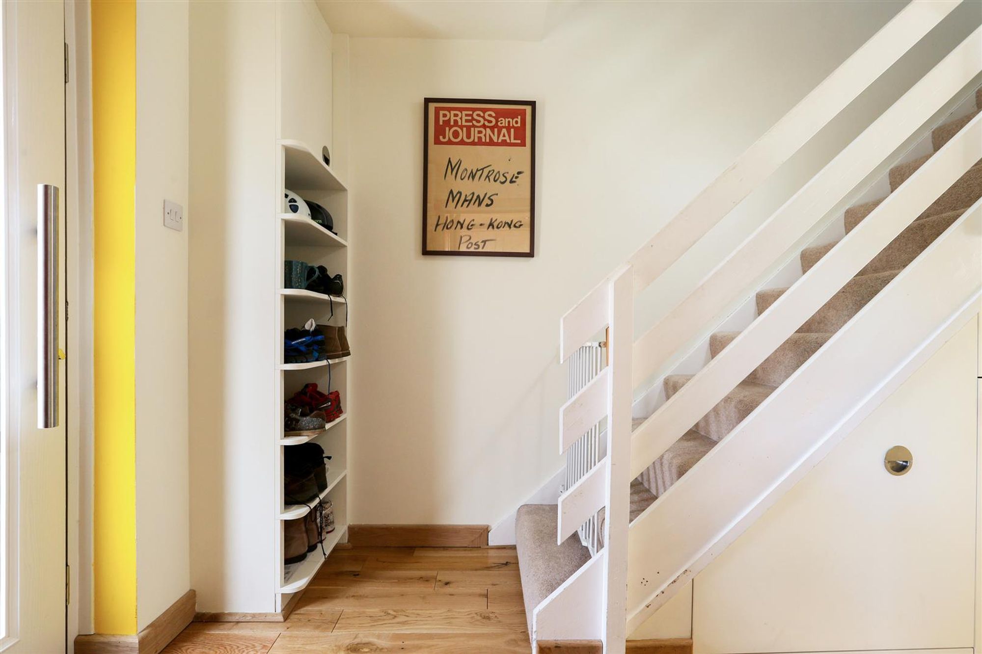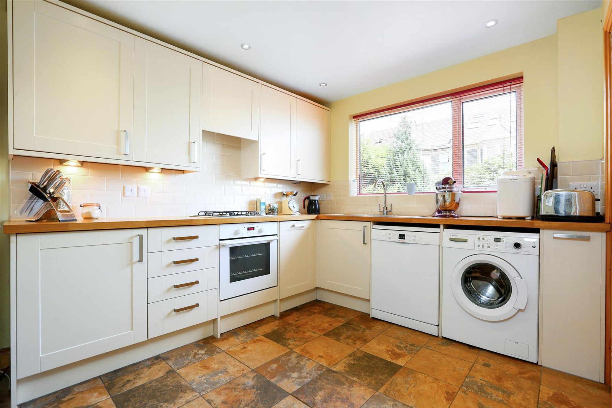 Entering the property is a welcoming entrance hall that provides access to all of the ground-floor accommodation. To the rear is a thoughtfully designed open-plan living and dining space, where bi-fold doors maximise natural light and create a seamless flow to the sunny garden. The inviting lounge area features a charming log burning fireplace, providing a cosy focal point, while the adjoining dining area offers ample space for a large table. To the front, the kitchen, which is well-appointed with modern units, generous worktop space, and a mix of integrated and freestanding appliances.