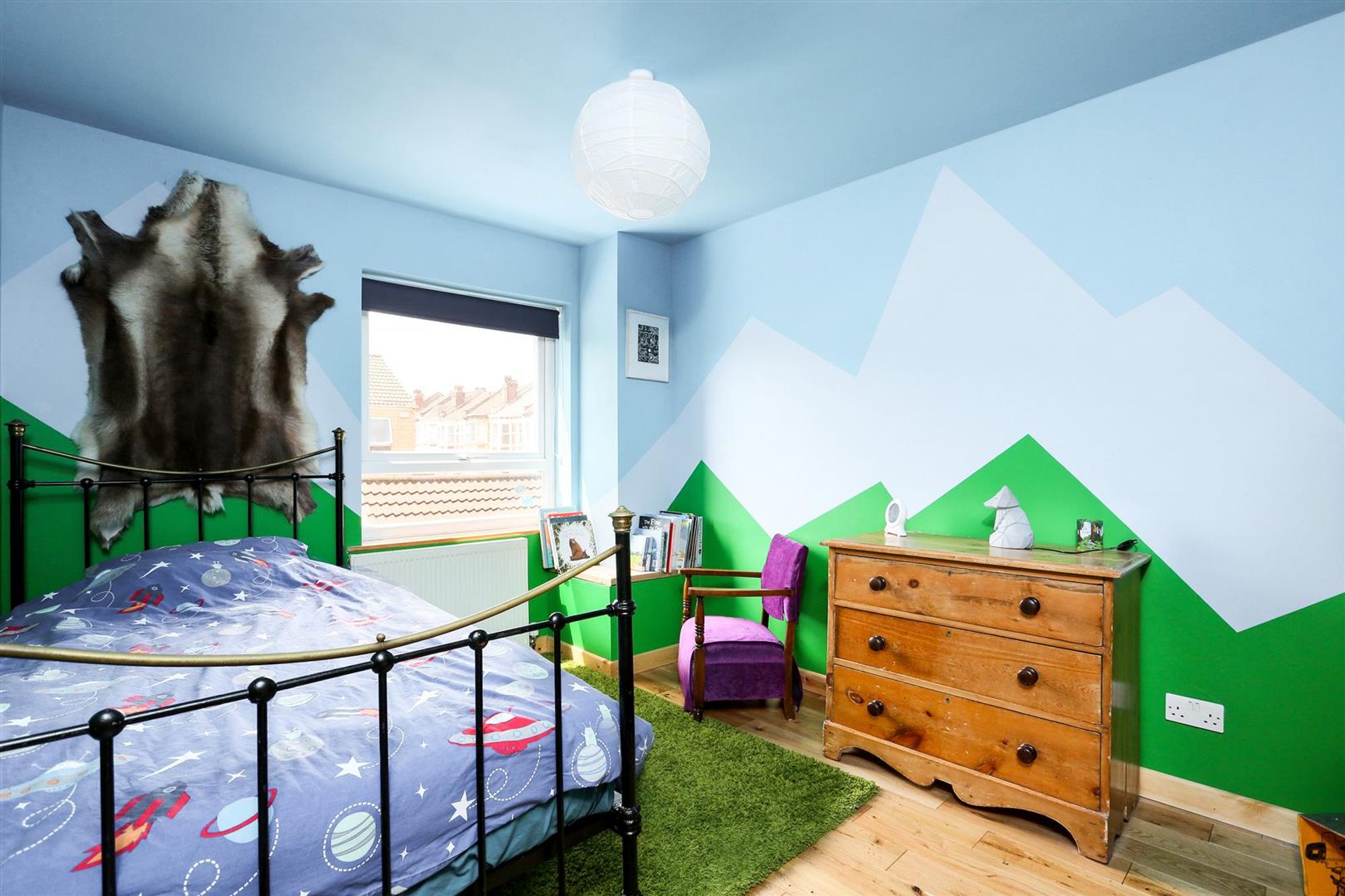 On the first floor, the property provides three well-proportioned bedrooms, including a generous principal bedroom with ample space for wardrobes, a spacious double second bedroom and a versatile third bedroom suitable for a nursery and home office, or guest accommodation. The family bathroom is fitted with a contemporary white suite, including a full-sized bath with a shower over, a wash basin, and a WC.