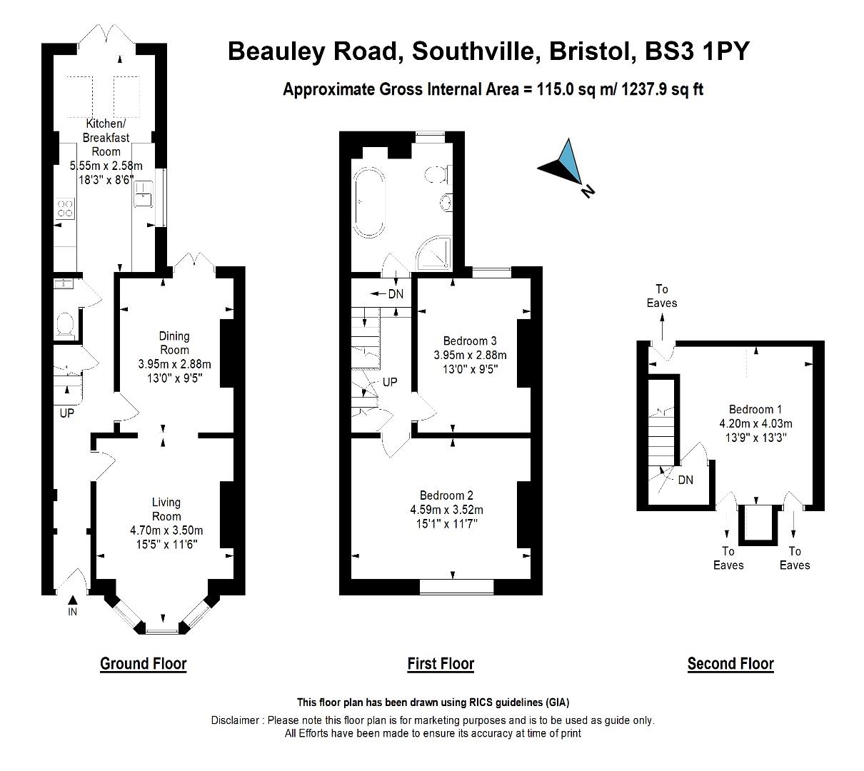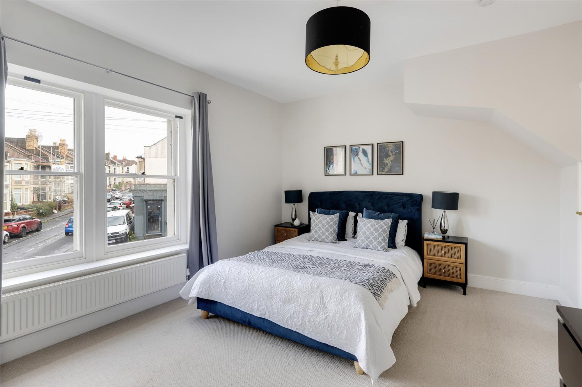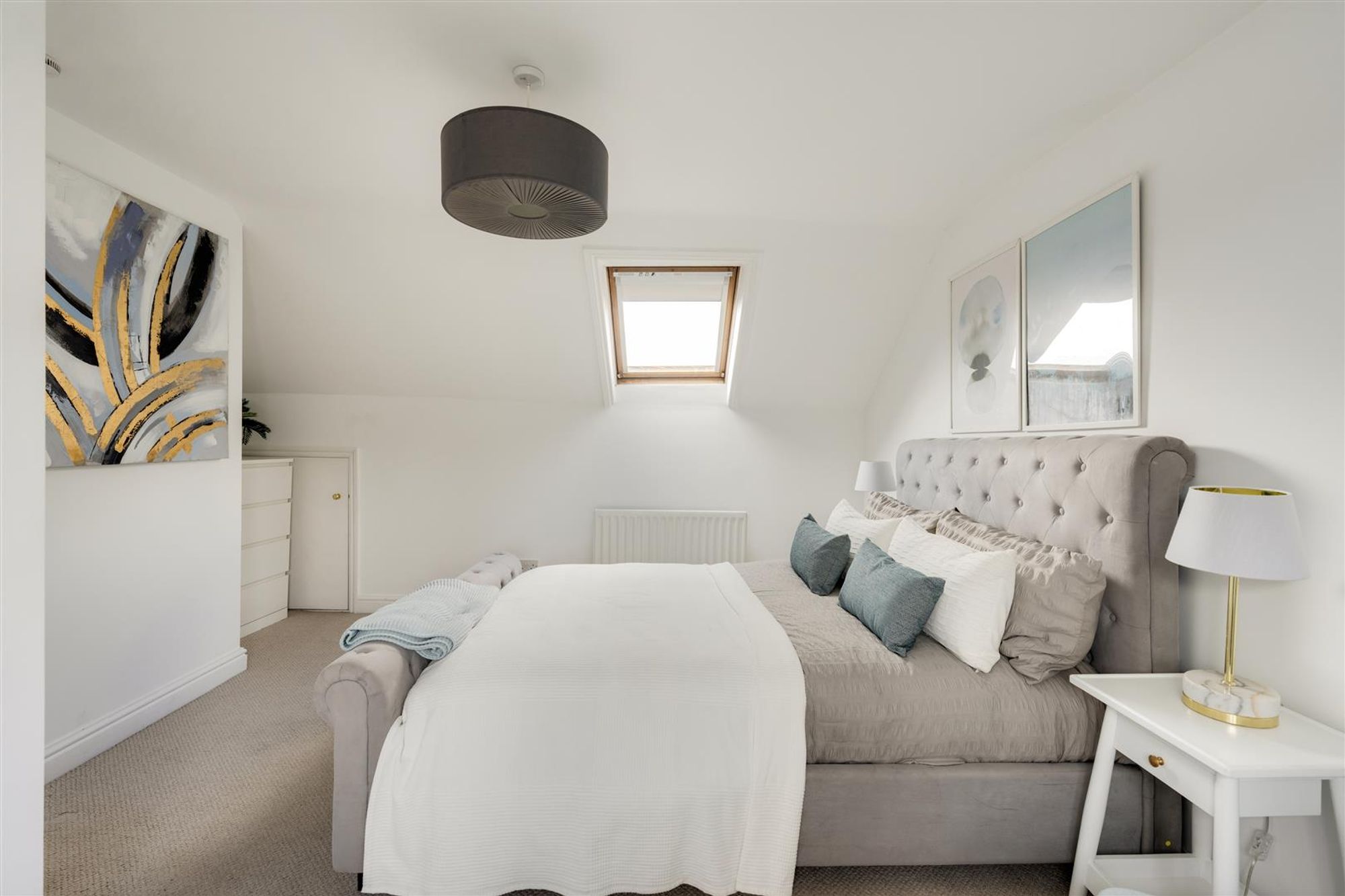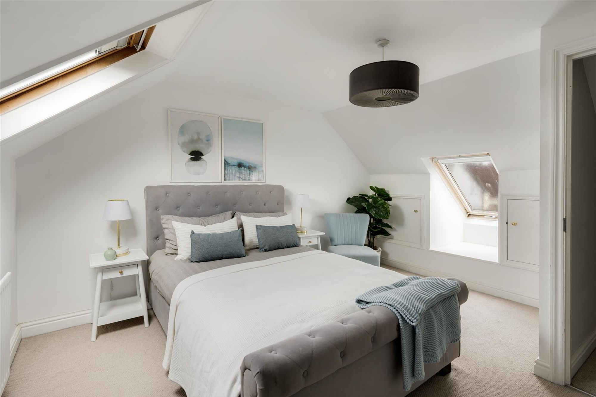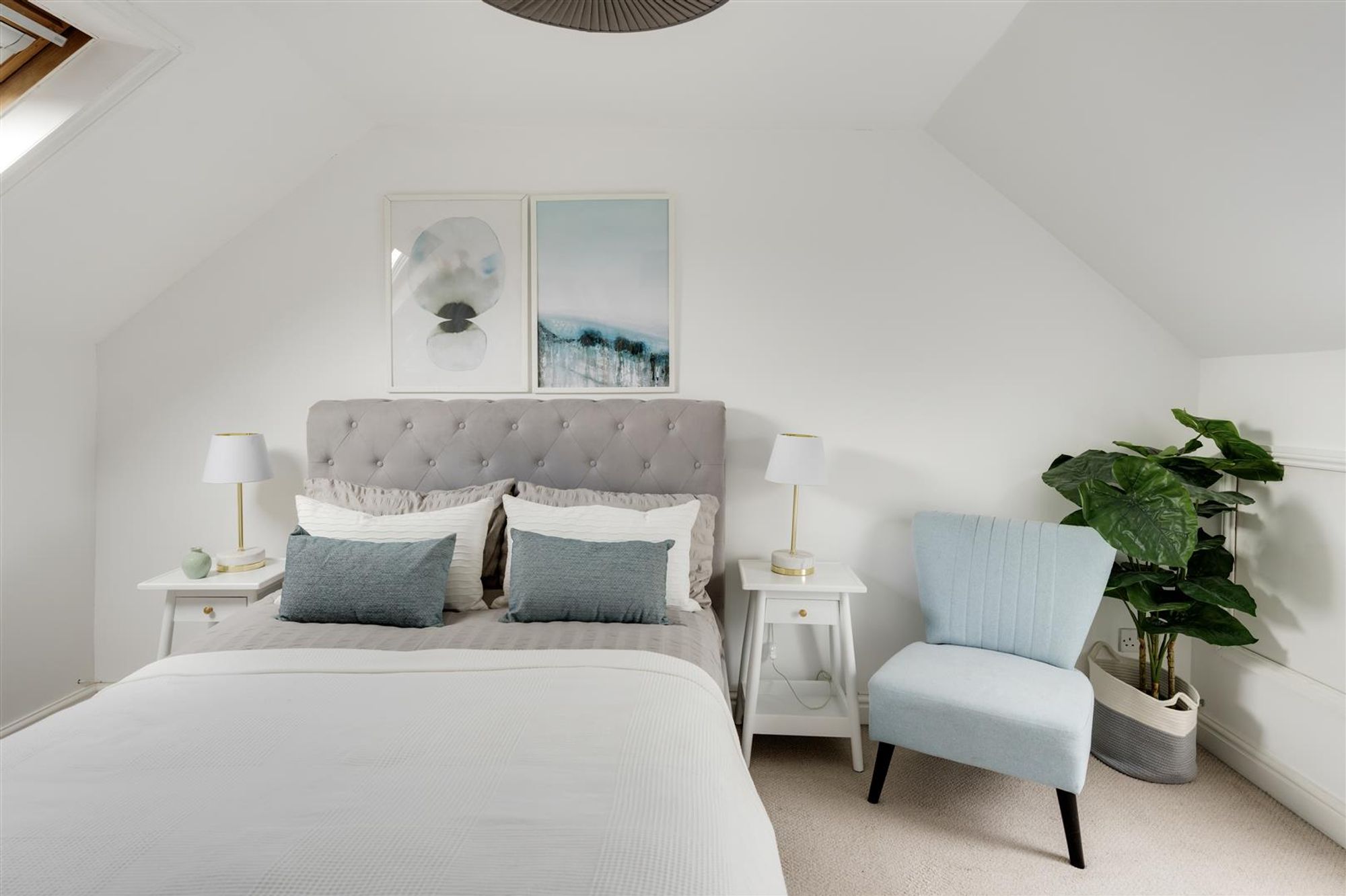 The top floor has been converted to create a comfortable third bedroom, finished with soft carpeting and offering useful access to eaves storage.