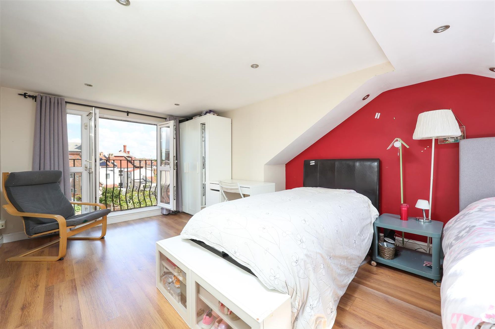 At the top of the house is an impressive master bedroom benefitting from roof-top views across Bishopston via a set of french doors complete with its own Juliette balcony . The spacious bedroom features a built-in wardrobe and ample eaves storage. The en-suite shower room is finished with a white suite and large walk-in shower complimented with tiled splash-backs and stainless steel fittings.