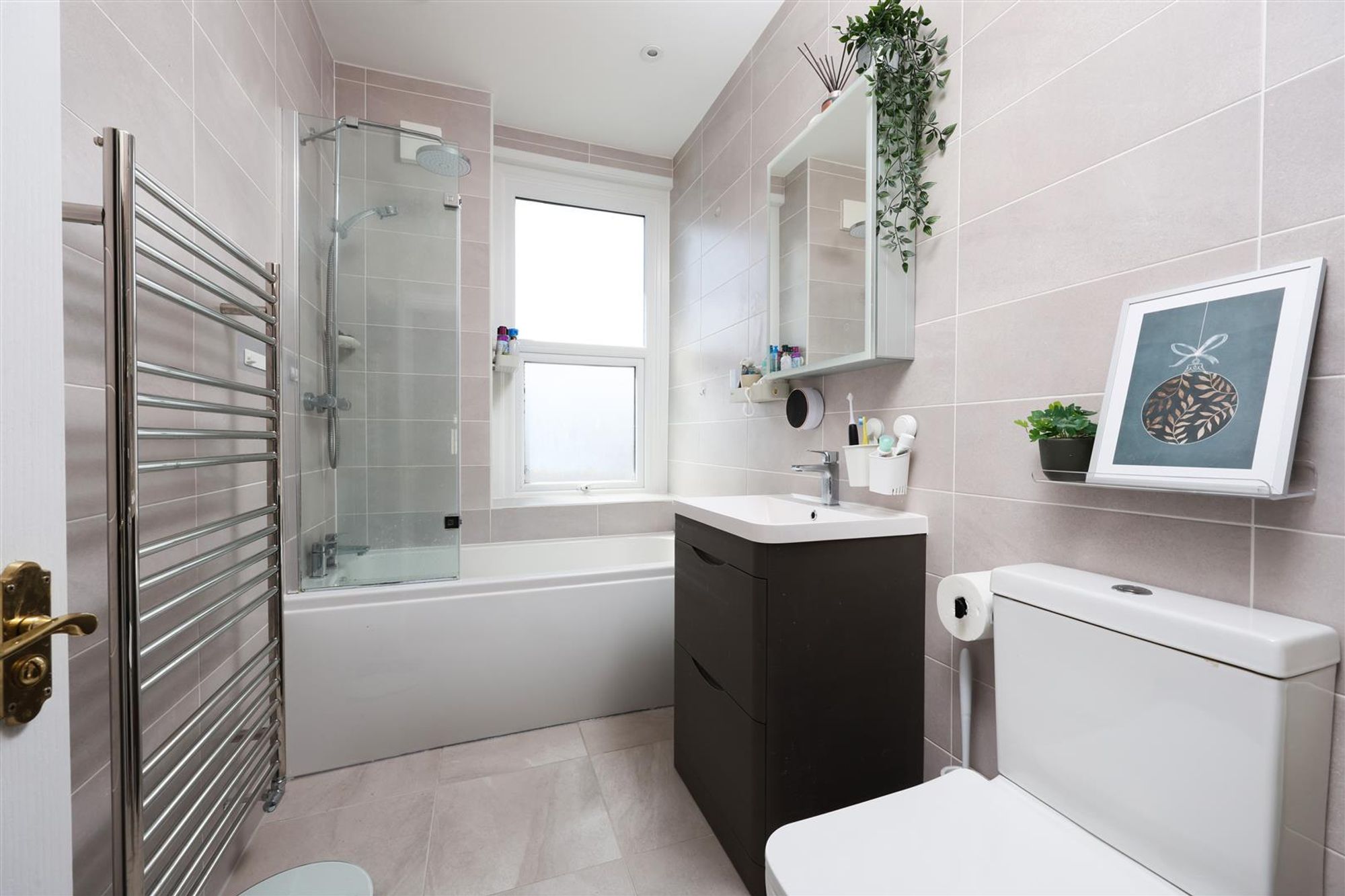 On the first floor are three double bedrooms and a family bathroom. Bedroom two is located at the front of the house with twin windows providing a pleasant view over Bishop Road. Another spacious double sits in the middle of the floor and overlooks the rear garden, whilst bedroom three shares the same outlook and is also a well-proportioned double bedroom. Completing the floor is a smartly finished family bathroom with a modern white suite with stainless steel fittings, floor-to-ceiling tiled splash-backs, a heated towel rail and a tiled floor.