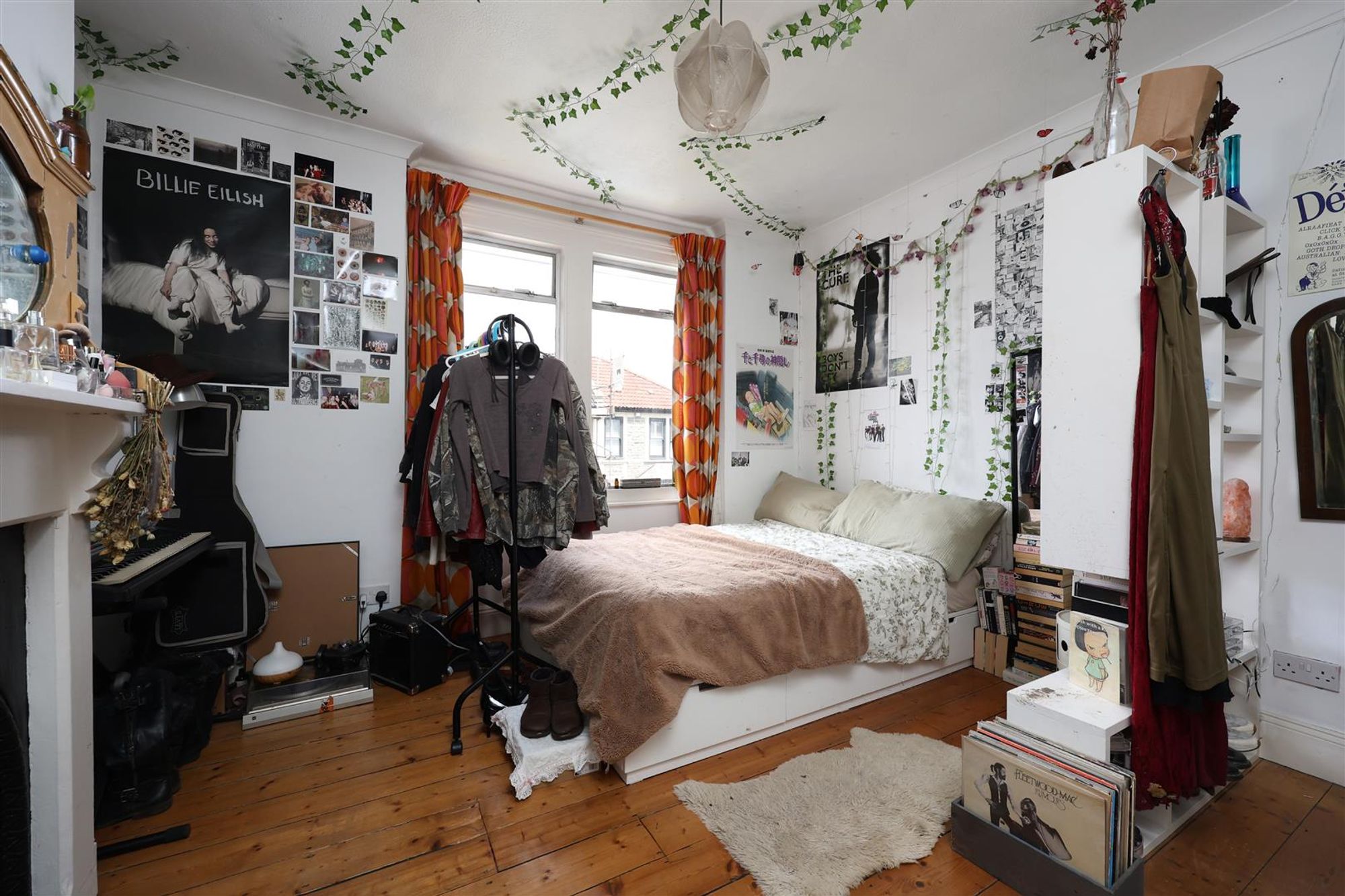 On the first floor, there are two double bedrooms, a spacious landing, and a family bathroom. Both bedrooms have stripped floorboards and coving, and the bedroom to the front has a period fireplace. The family bathroom at the rear has a bath, a walk-in shower cubicle and a period fireplace.