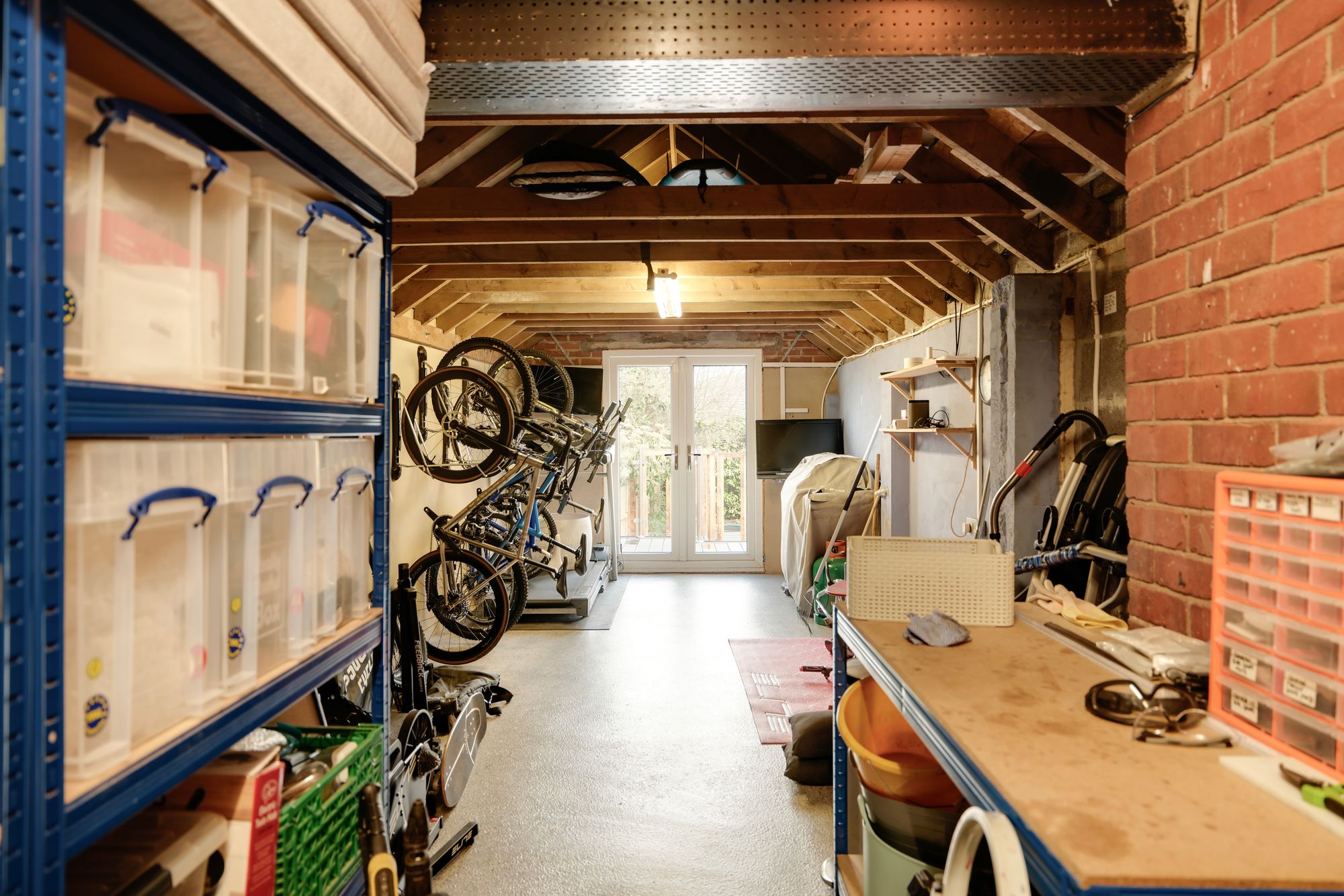 - Full-length garage with durable resin flooring, ideal for storage, parking or workshop use