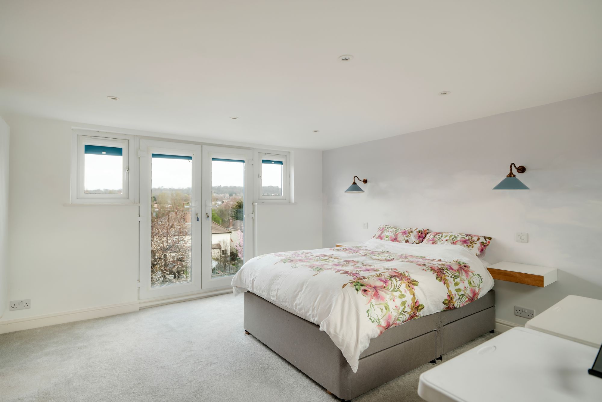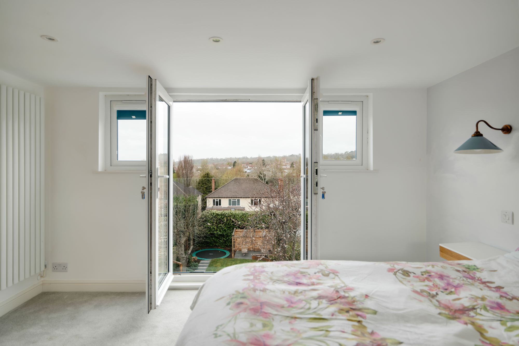 The loft has been converted to create a fifth bedroom, with built in storage and French doors with a Juliette balcony offering far reaching views. Complete with a stylish ensuite bathroom with walk in shower and skylight, the loft room offers flexible and private space.