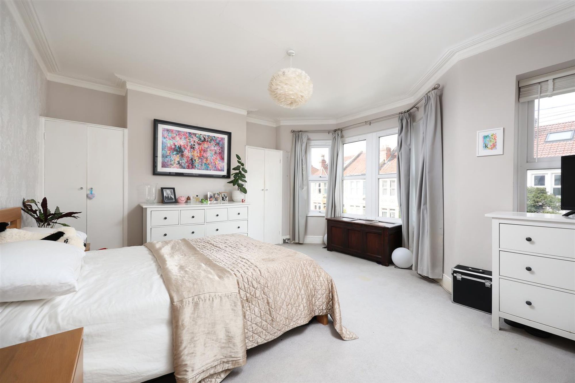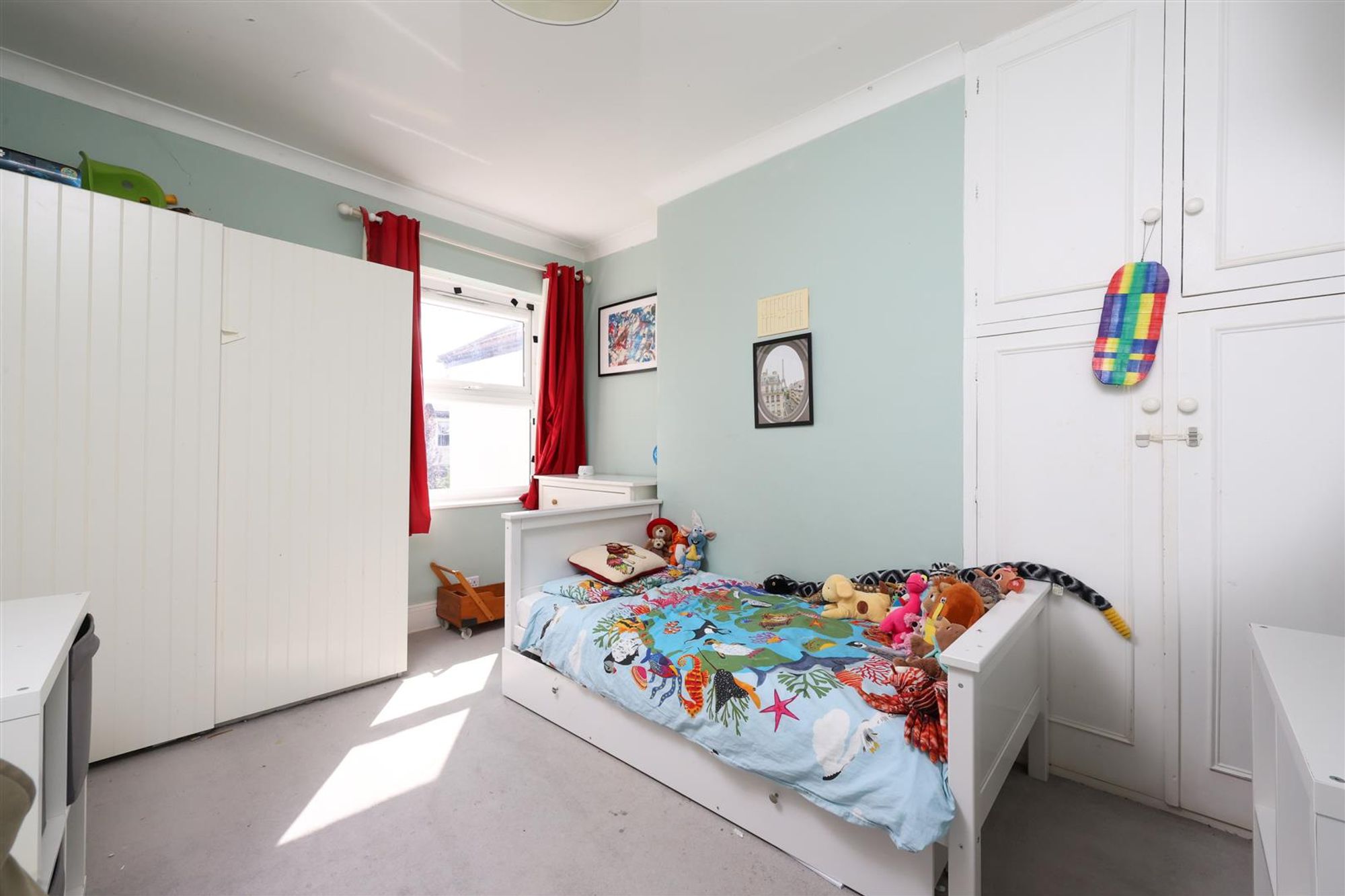 Rising to the first floor, the bedroom to the front spans the full width at the front of the property, featuring a bay with uPVC windows, ceiling coving, and built-in wardrobes. The third double bedroom sits centrally with a fitted wardrobe within one of the alcoves and a double-glazed window overlooking the garden. To the rear, the fourth double bedroom has a double-glazed window overlooking the garden and built-in wardrobes in one of the alcoves. Next to this is a tastefully finished bathroom with wall and floor tiling, a bath with a shower over, a W/C, a wall-mounted vanity unit with a basin, and an obscured double-glazed window.