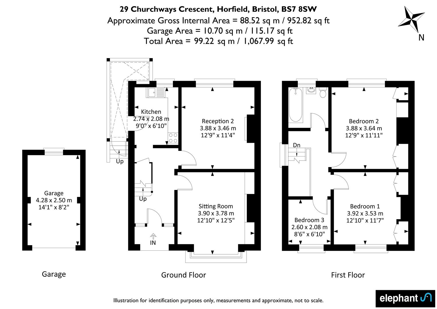 Externally, the front of the property bears the classic bay-fronted facade, with a front garden and off-street parking, whilst the rear garden has been presented in two sections consisting of a paved area and laid to lawn enclosed by shrubs and plants. A separate garage is located to the side of the garden and the property also offers useful side access.