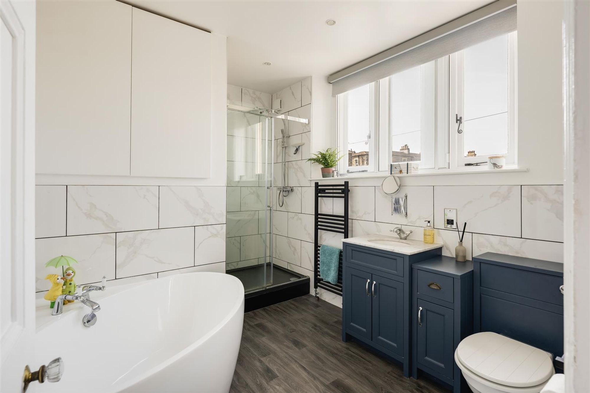 - Spacious bathroom with separate shower and bath
