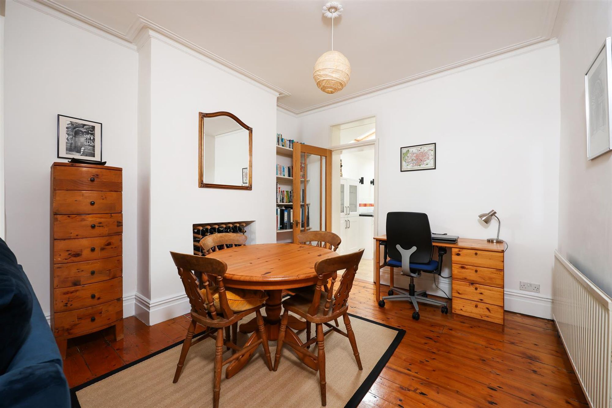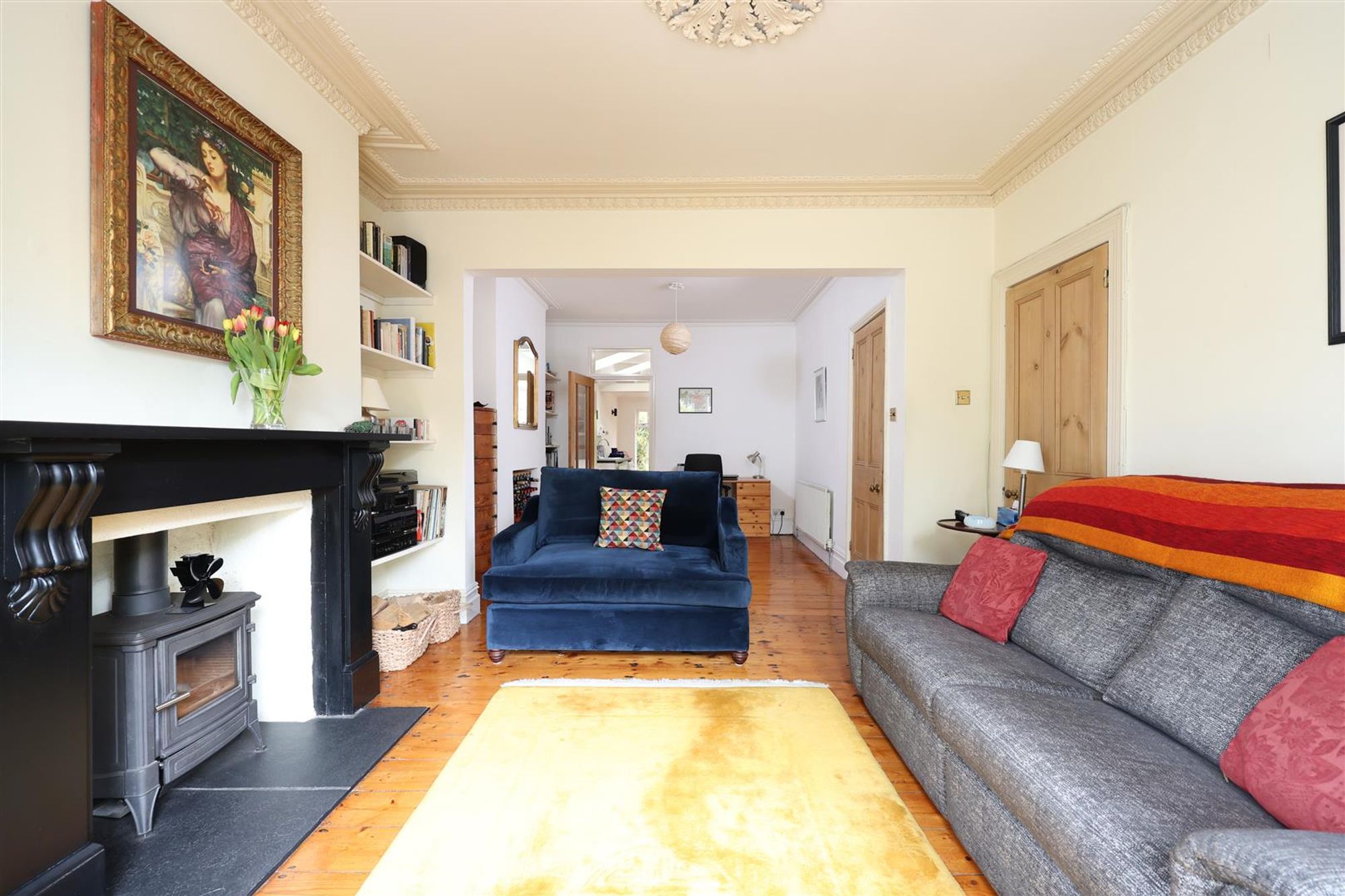 Accommodation on the ground floor comprises: Main vestibule entrance leading into a central hallway with a downstairs W/C. The ground floor consists of two open plan reception rooms with an original stripped wood floor throughout. The living room and lead reception is at the front and features a double glazed bay window, ornate cornice and ceiling rose, picture rail and a wood-burning stove complete with period surround. An archway leads through to the rear of the two reception rooms which has plenty of space for a large dining table and chairs, whilst a glazed door leads directly through into the kitchen/diner.