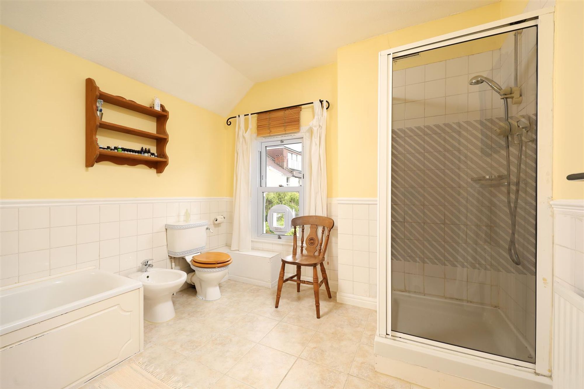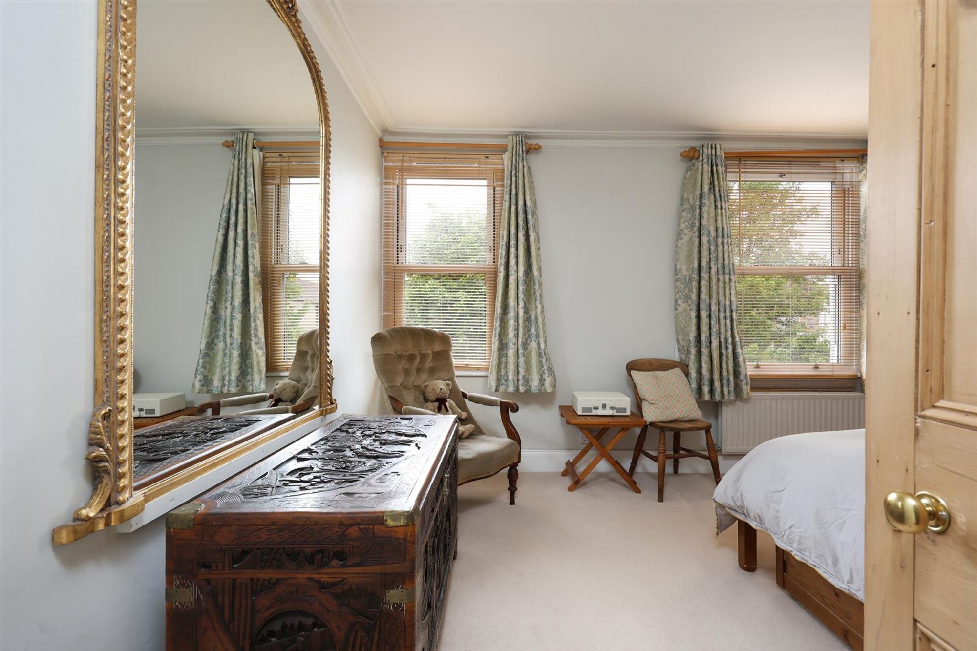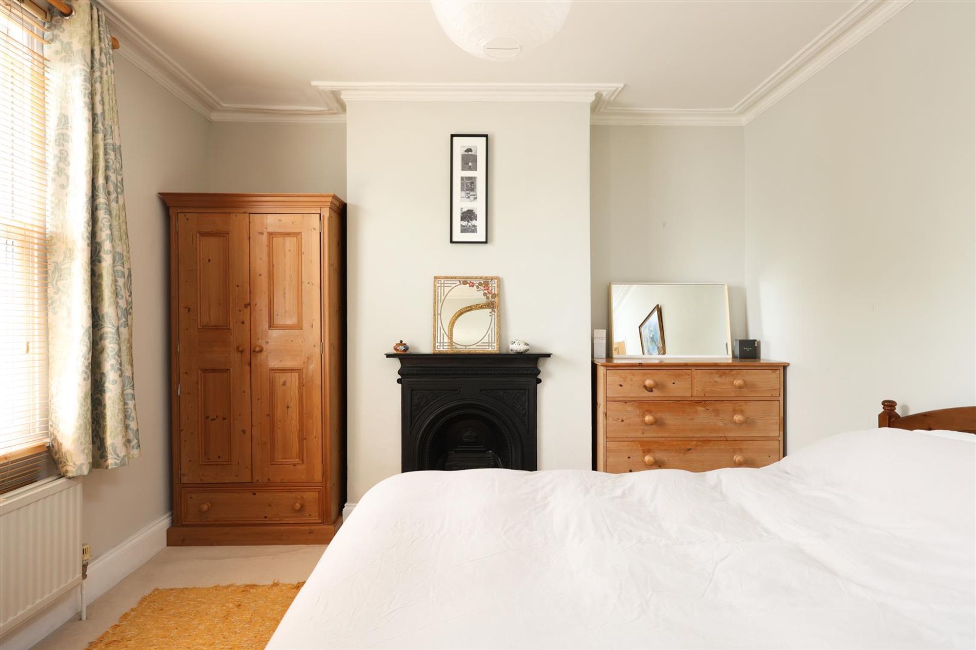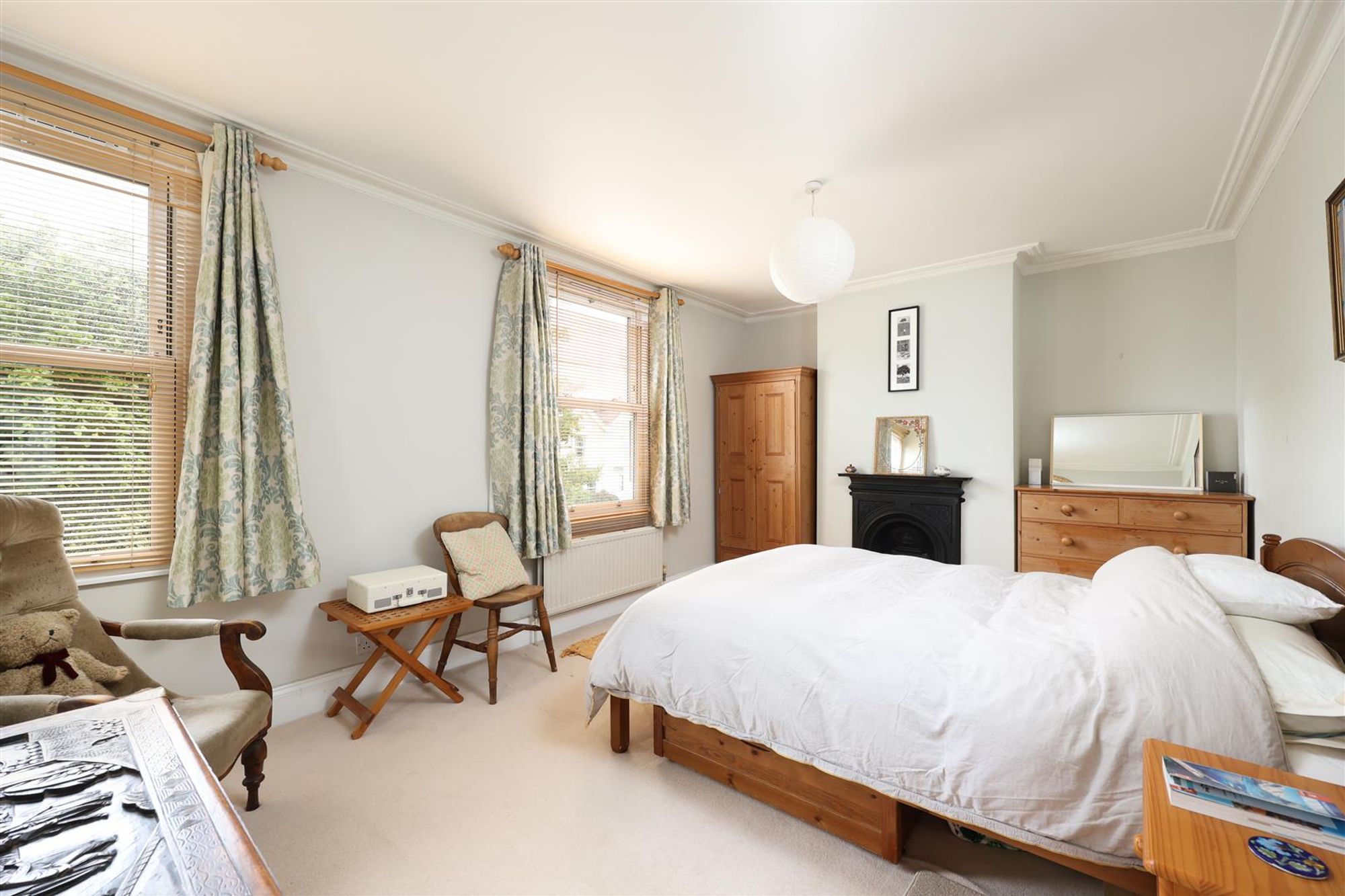 A staircase leads up to the first floor to two bedrooms and a family bathroom. The landing area features an original built-in storage cupboard and provides easy access to a boarded loft space via a pull down ladder. The beautifully proportioned master bedroom is located at the front of the house and spans the full width of the property. Amongst the features are an original cast-iron fireplace and twin windows that offer a green and leafy outlook on to Egerton Road. The second bedroom is also a spacious double and overlooks the rear garden, whilst completing the accommodation is a well-proportioned family bathroom with a modern whiter suite, separate walk-in shower, tiled splash-backs and a tiled floor.