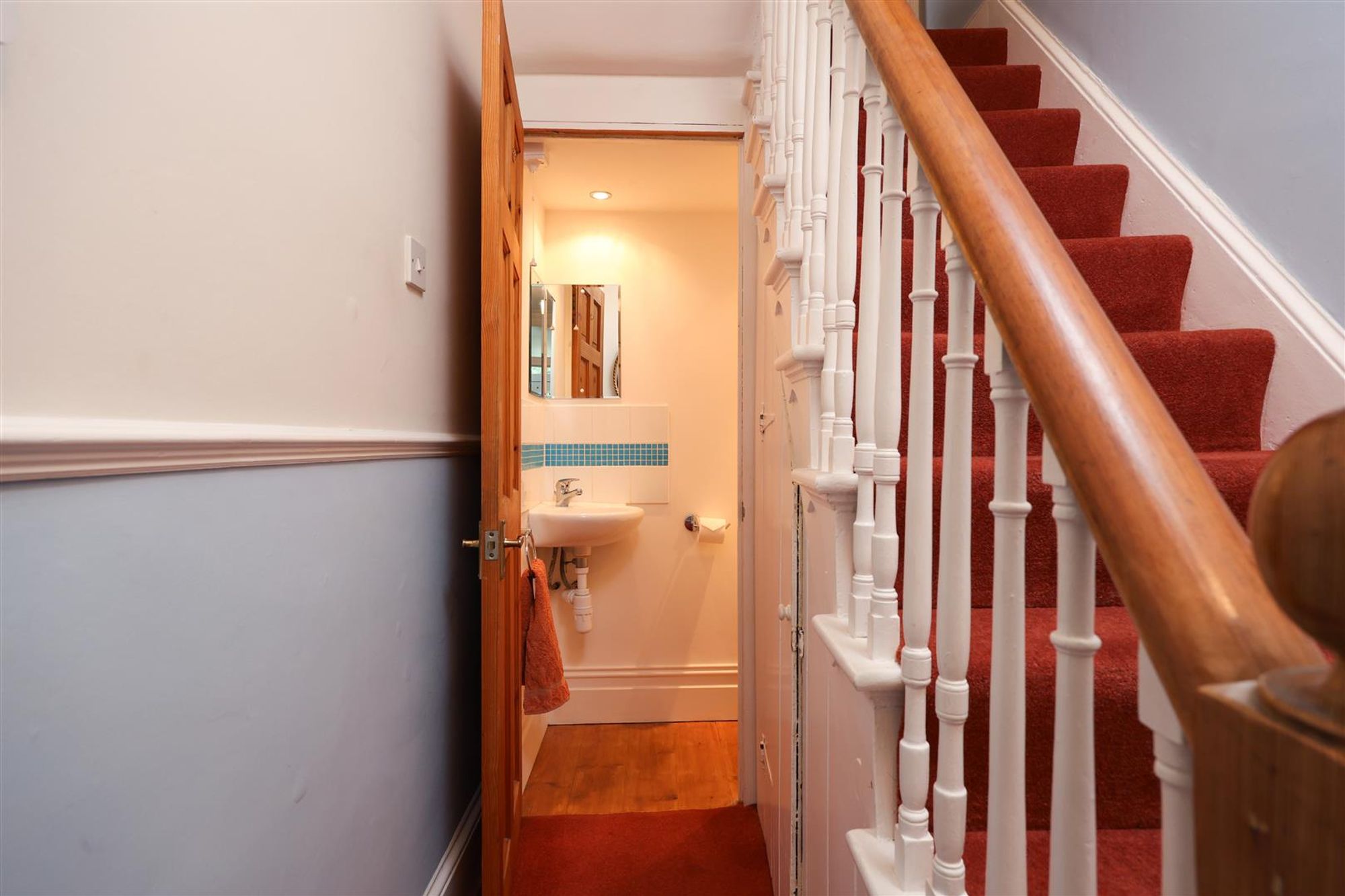 Externally to the front, the property benefits from a striking bright blue render, a block paved driveway offering off-street parking for one car and a secure bike storage unit. The mature rear garden is presented in two sections consisting of a laid lawn bordered on both sides by an array of mature trees, plants and shrubs leading down to a paved patio/seating area that takes full advantage of the afternoon/evening sun. The property also benefits from useful rear access via Dulverton Road.