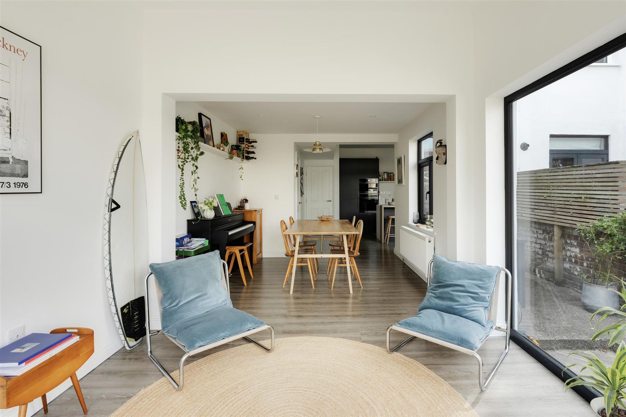 Accommodation comprises; main entrance and porch leading into the hallway with a reclaimed oak LVT floor throughout the ground floor and a separate utility area incorporated underneath the staircase. The living room and lead reception room sits at the front of the property and features a bay window with double-glazed timber framed sash windows and plantation style wooden shutters. At the rear of the property is a recently converted light and bright open plan kitchen-diner which is the real hub of the house and perfect for families and entertaining. The kitchen has been fitted with a range of sleek grey units with contrasting seamless corian work surfaces and metro-brick tiled splash-backs. Further features include an integrated oven/microwave, induction hob with integrated down draft extractor fan and a dishwasher. A set of French doors look out onto the rear garden. The dining area has plenty of space for a table and a further seating area at the rear is bathed in natural light thanks to a large floor to ceiling window and bi-folding doors that overlook and provide a seamless connection to the rear garden.
