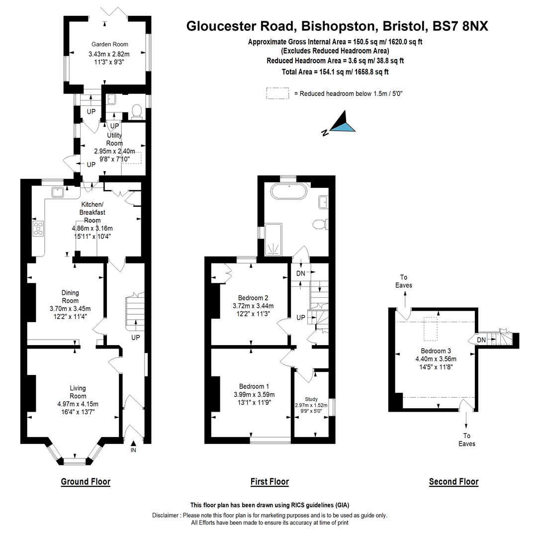 A staircase leads up to the first floor to two double bedrooms, a separate study and a spacious family bathroom.