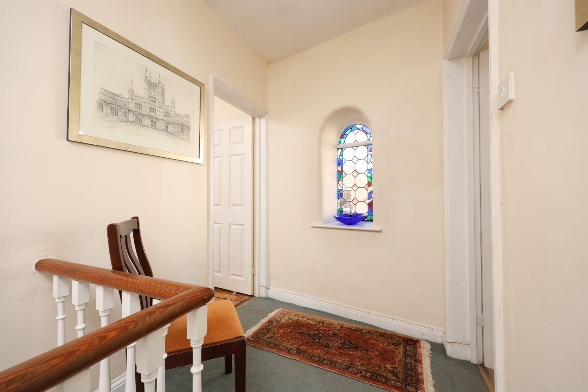 Off of the upstairs landing, which features an attractive stained glass window, is a living room and an adjacent kitchen with plenty of scope for modernisation. Also on this level is an additional double bedroom, offering flexibility as a guest room, home office, or additional living space.