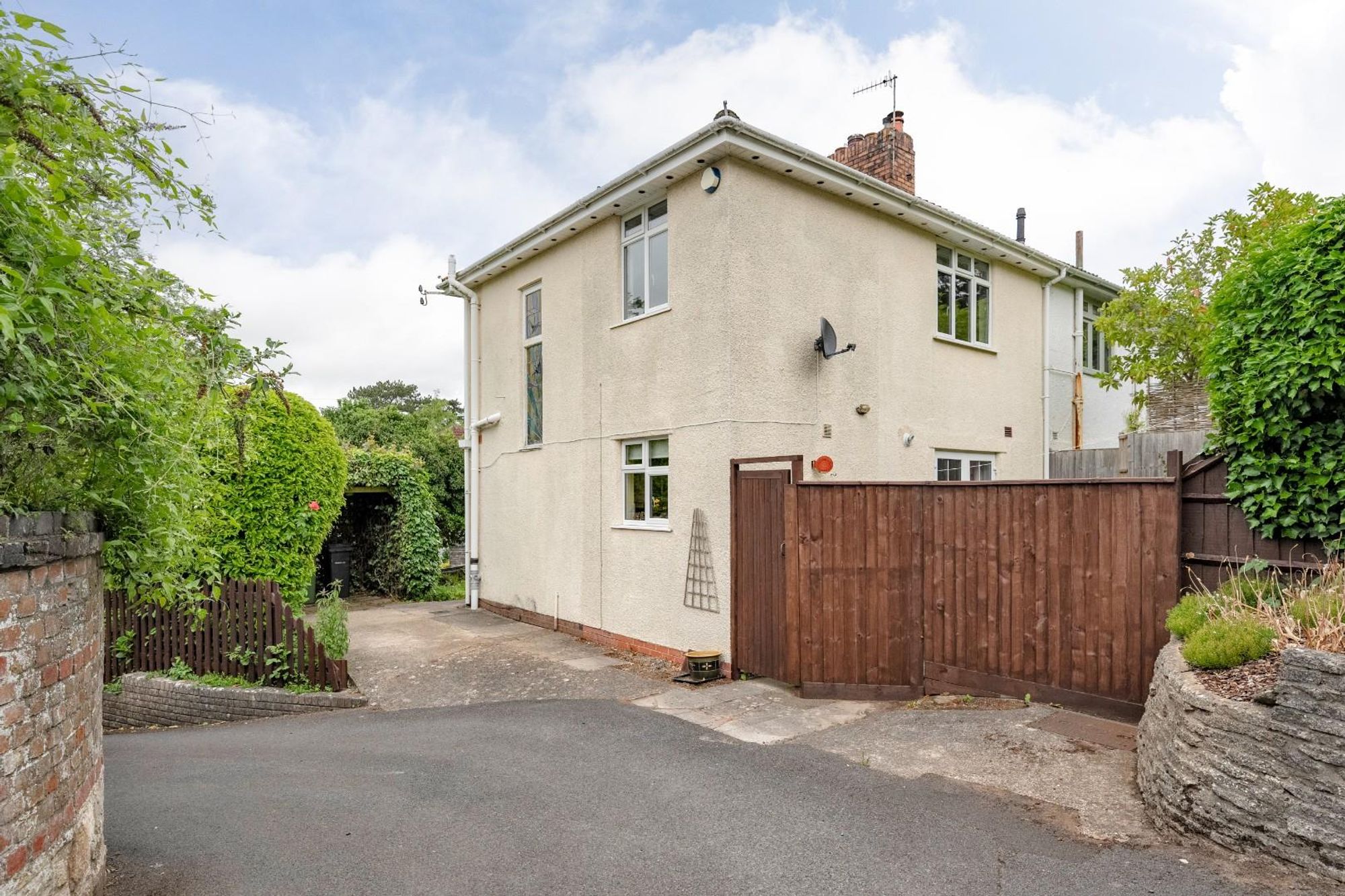 The property features two off-street parking spaces, accessed via a lane to the side of the home.