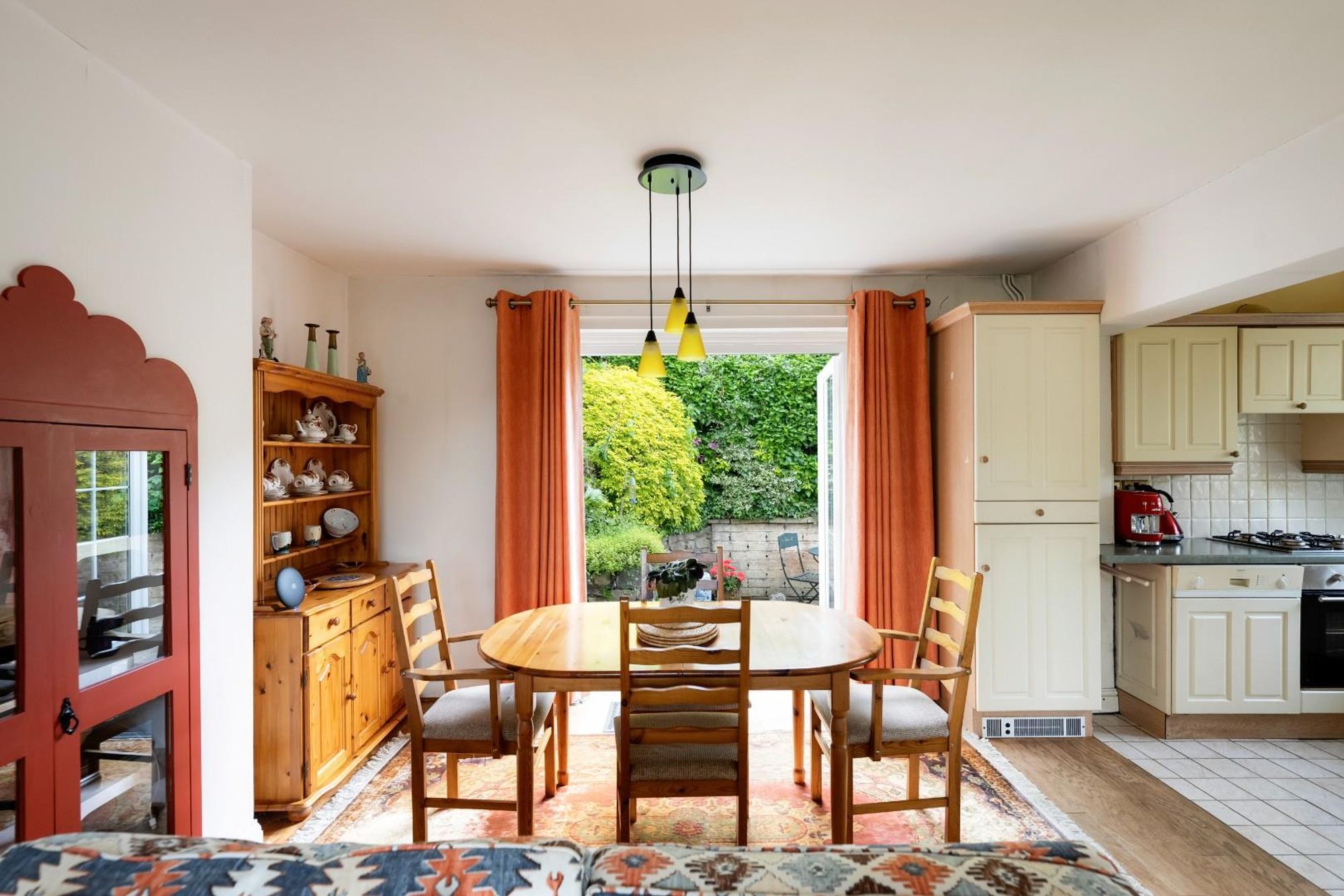 The front entrance opens into a well-presented hallway, where a useful understairs cupboard and ground floor w/c offer everyday practicality. From here, you move through into the open plan kitchen, living and dining room; a space that offers flow, comfort and thoughtful character.