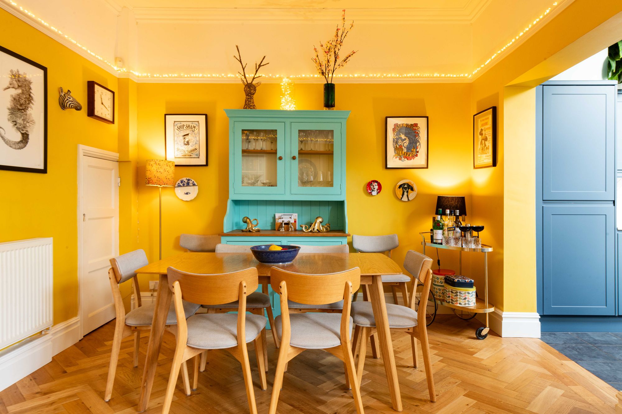 The front of the property has a beautiful Wisteria climbing the stone facade, off-street parking, a tiled pathway to the entrance, and a variety of mature plants and shrubbery. At the entrance door, a central hall offers a practical space to tuck away shoes and coats, with doors to the ground-floor reception rooms and an understairs storage cupboard. From here, parquet flooring runs through the entire ground floor and into the sitting room.