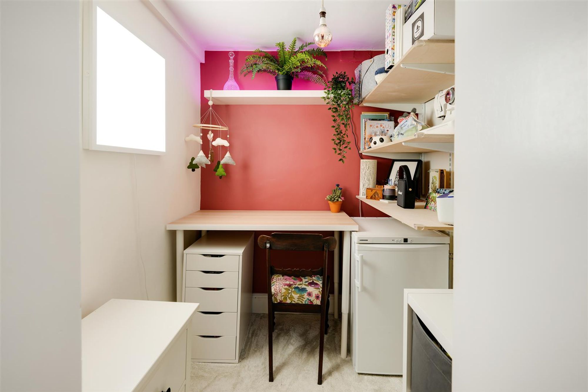 The study space is located next to the second bedroom and could be used as a full-time office or useful storage room. This room houses the boiler.