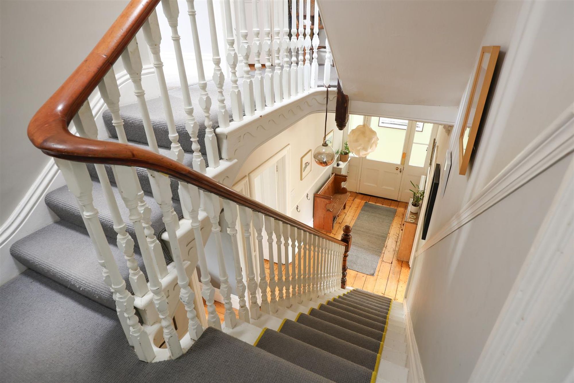 The property has a one-car driveway and a tiled pathway to the entrance. The front door opens into an entrance vestibule with a geometric tiled floor, a door to a sheltered store leading directly to the rear garden, and side door into the entrance hall. The entrance hall retains ornate cornice, a ceiling rose, stripped wooden floorboards and doors to all ground floor rooms, a boot/cloak room and under-stairs storage.