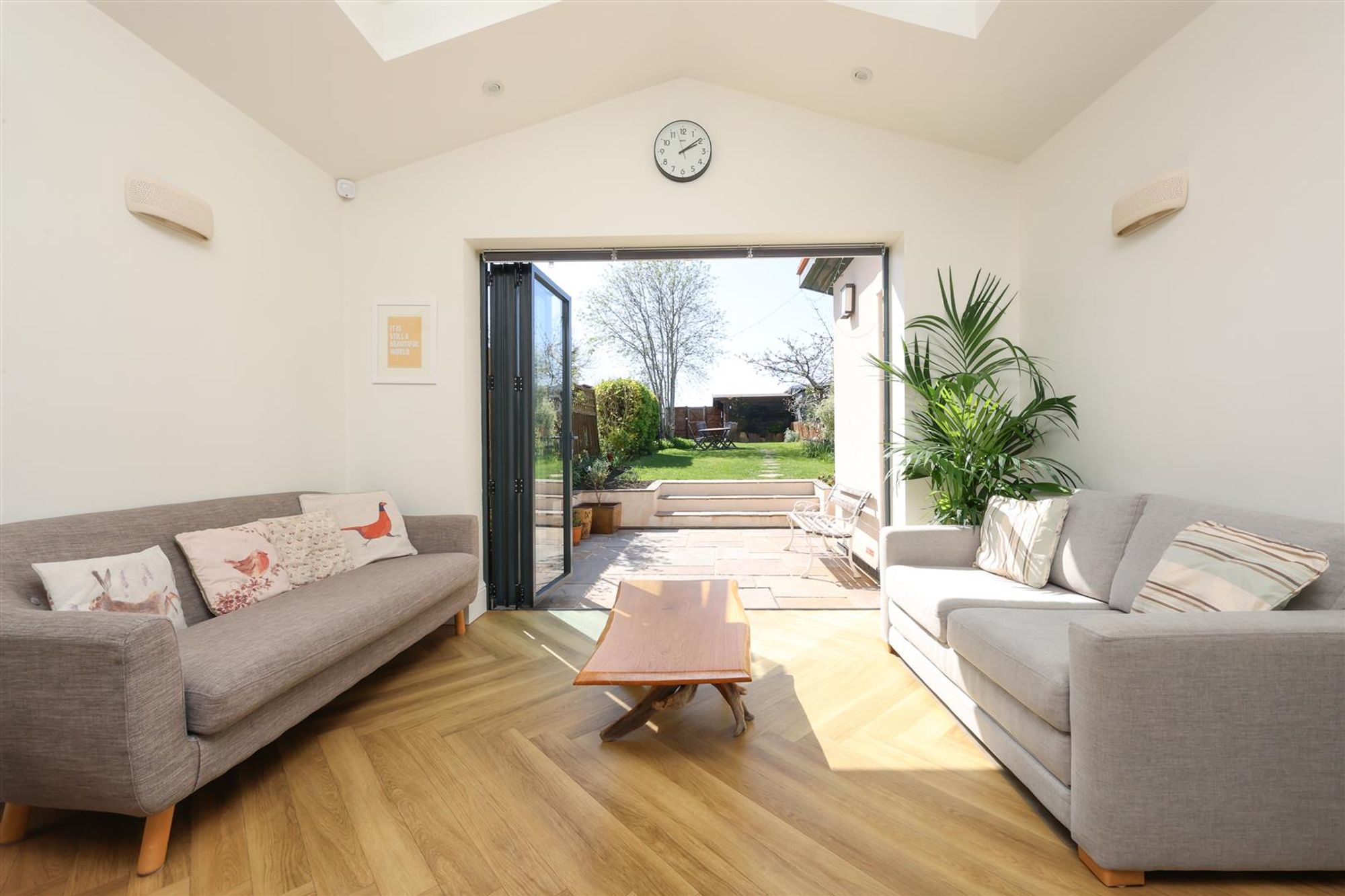 The property has been renovated to a high standard, incorporating an impressive open-plan kitchen/diner with bi-fold doors leading onto a beautiful southwest-facing rear garden. You enter the property into a large entrance porch providing plenty of space for coats. A door then leads into the hallway with stairs rising to the first floor, pull-out shoe storage under the stairs, and doors leading to the sitting room and kitchen/diner/living room.
