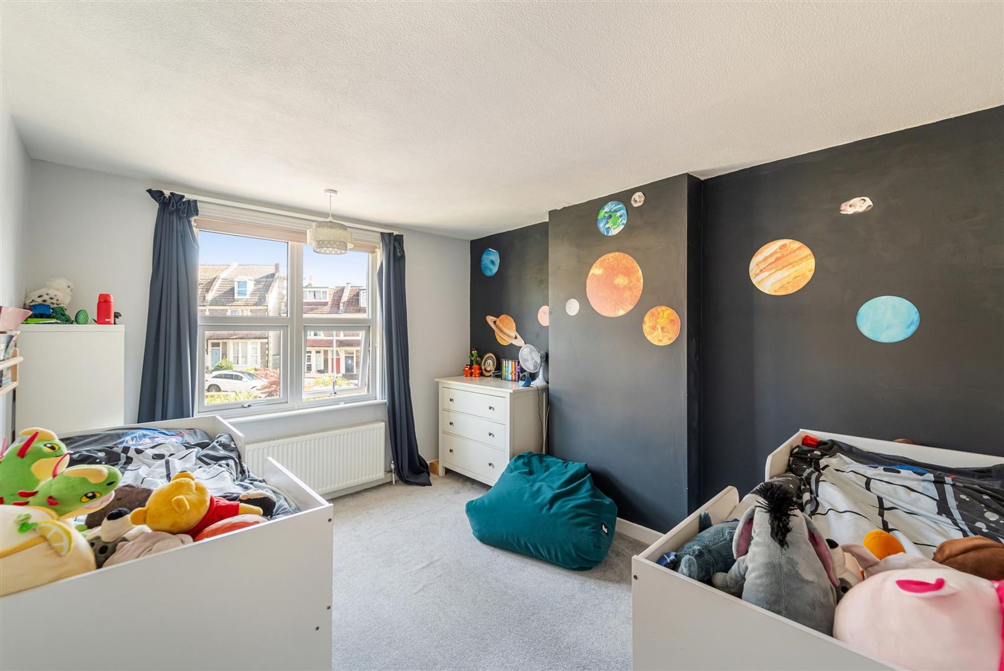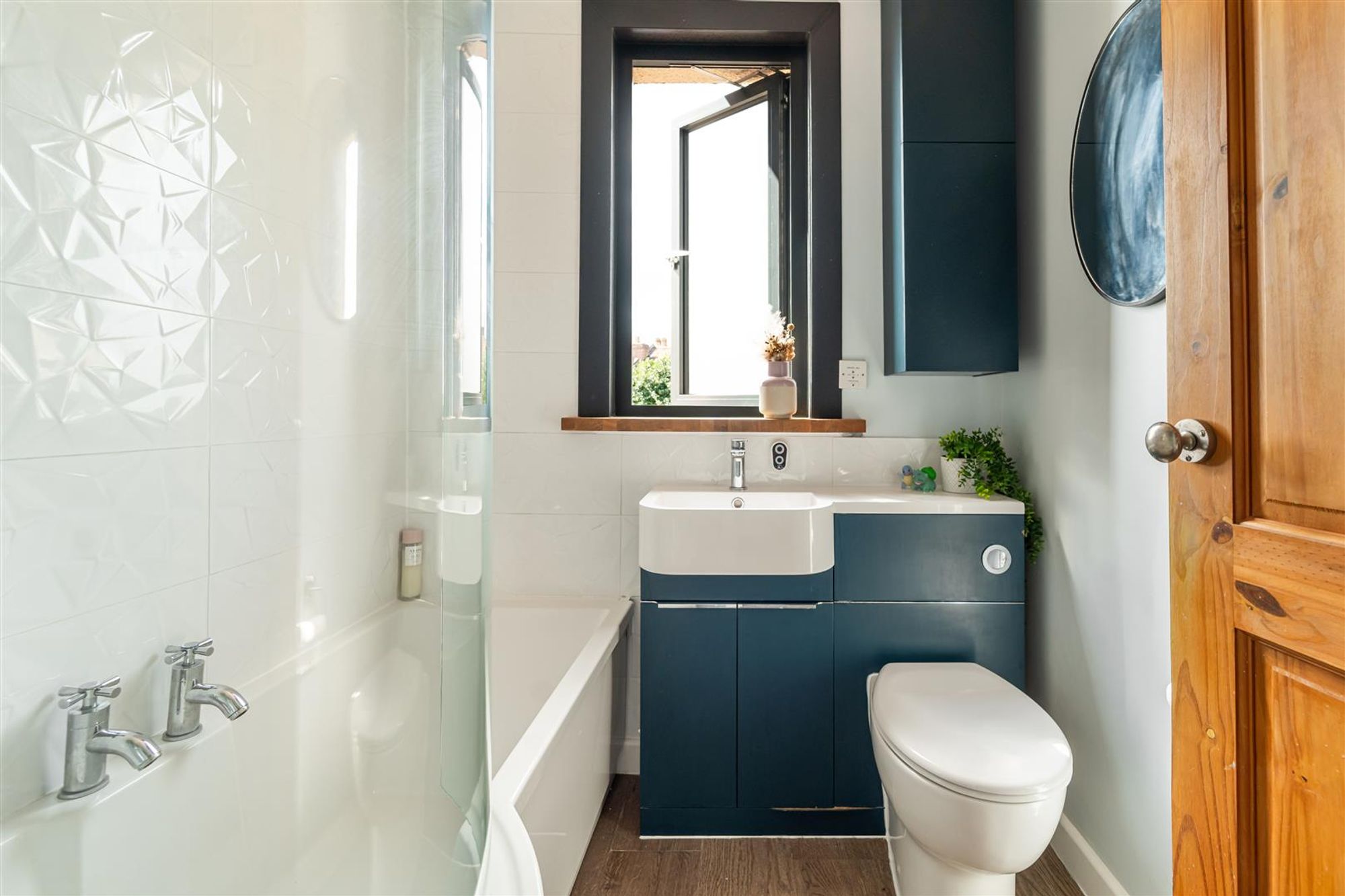 Upstairs, on the first floor, are three bedrooms and a family bathroom. Bedroom three is neatly decorated with double glazed windows overlooking the front, the adjacent bedroom four is currently set up as a play room but could be a home office or nursery. At the rear bedroom two has a range of fitted wardrobes and drawers with double glazed windows to rear the rear. The family bathroom next door has a modern suite comprising a 'P' shaped bath with shower over, a vanity unit incorporating a wash hand basin, storage and a w.c.