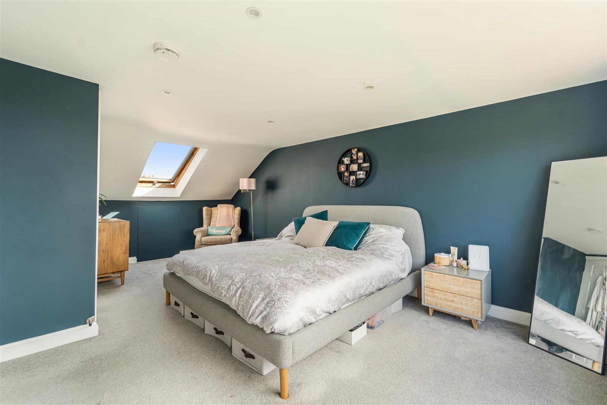 The principal bedroom extends over the entire second floor, with doors to a walk-in wardrobe, an en-suite shower room and access to eaves storage. The contemporary shower suite features a large walk-in shower, a wall-hung vanity unit with an inset wash hand basin and W.C.