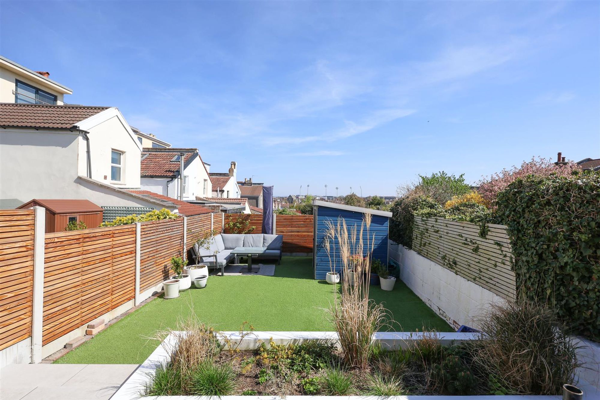 Externally, the front garden has been well maintained with a neat hedge, period tiled pathway and a useful secure bike storage unit, whilst the rear garden is a real gem and is presented in two sections consisting of a large mandarin stone paved patio and eating area, and a raised bed planted with an array of plants and shrubs. Steps lead down to a low maintenance artificial lawn bordered on both sides by larch slatted fencing. A timber framed shed at the bottom of the garden provides plenty of extra storage.