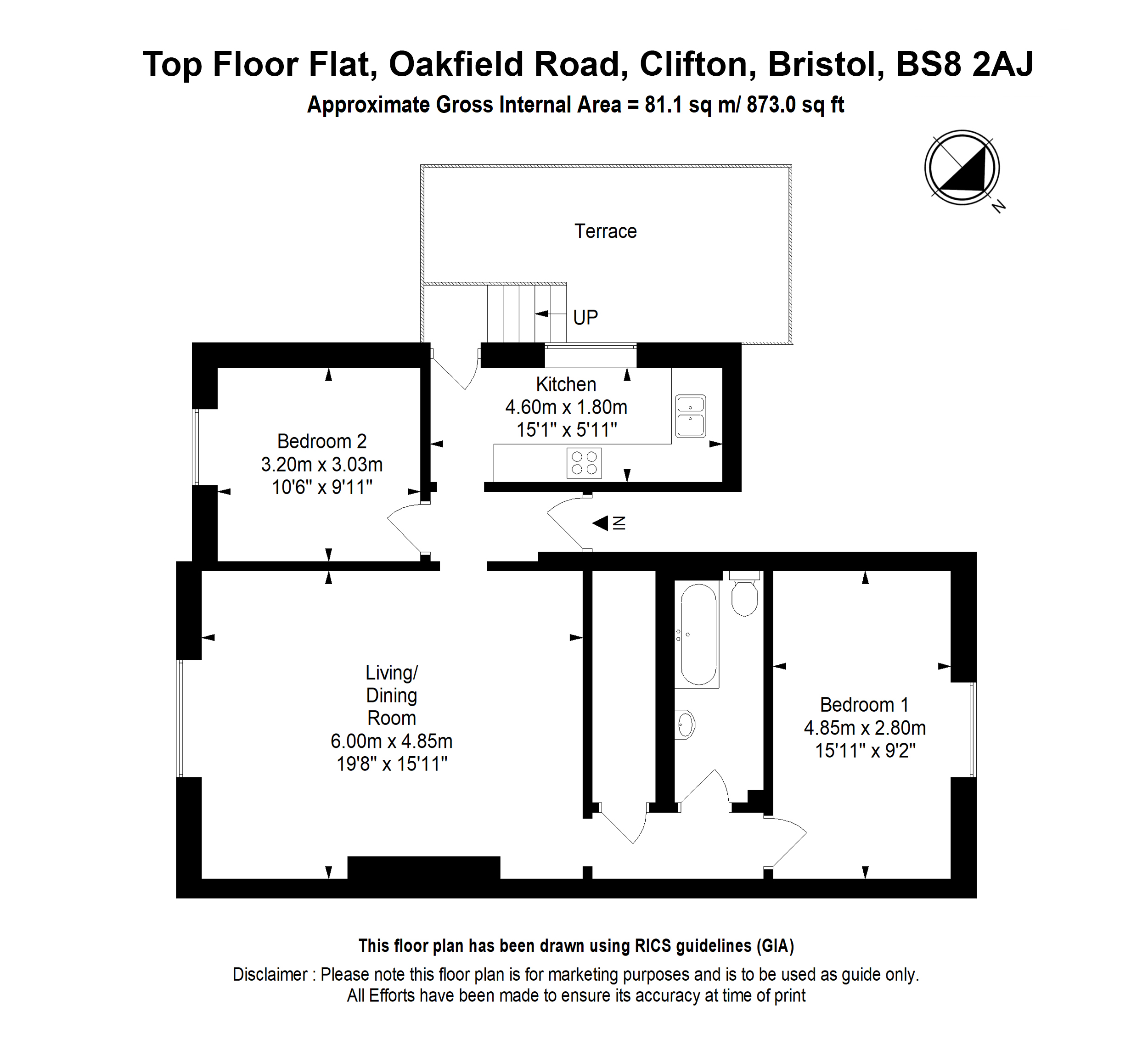 The flat is perfectly placed to enjoy everything Clifton has to offer. The Clifton Lido is just around the corner, while Clifton Village and Whiteladies Road are a short walk away, offering a wide range of independent shops, cafés and restaurants. The green open space of The Downs is also nearby, and there are excellent links to the City Centre.