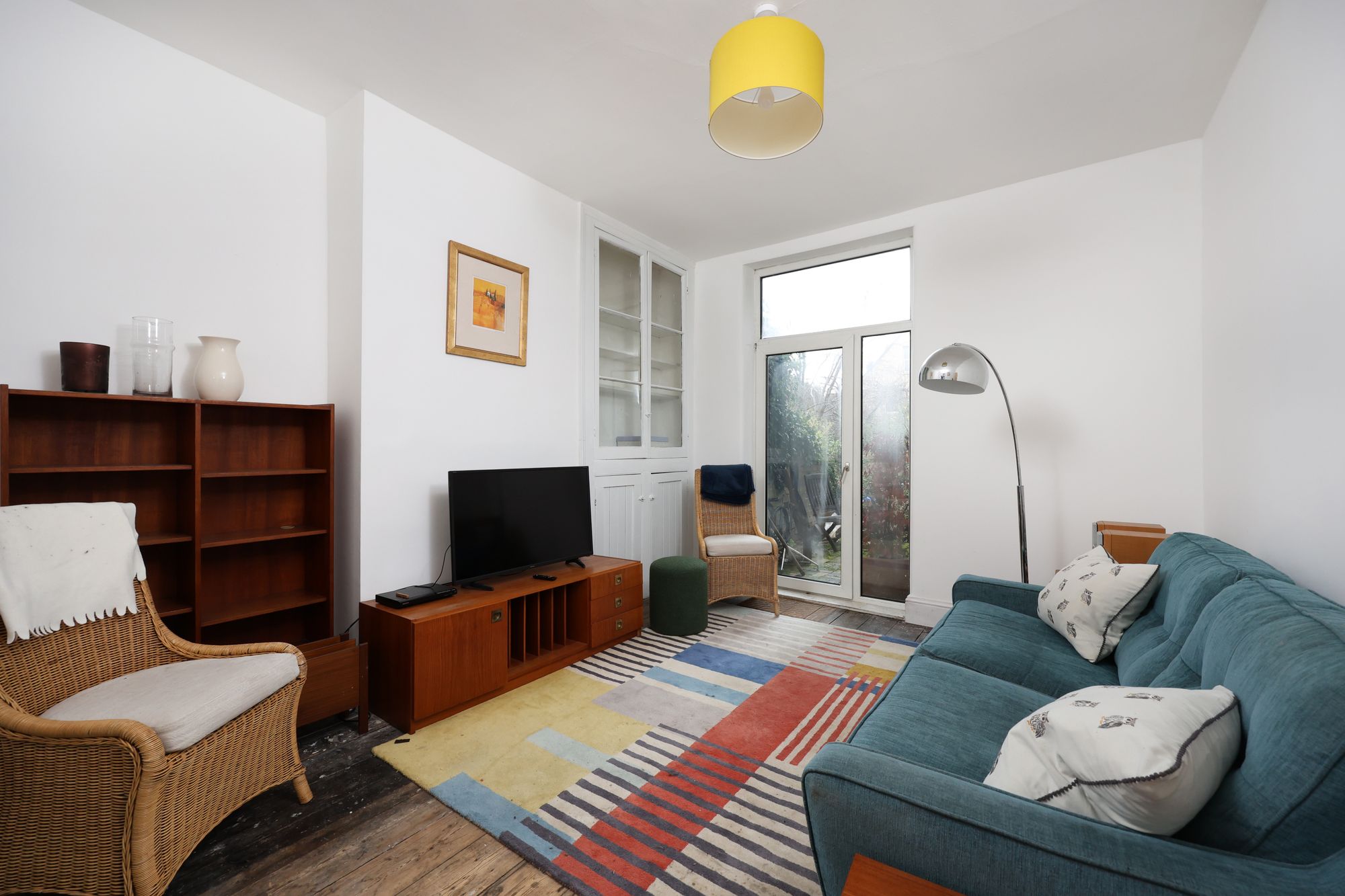The sitting room has bay double-glazed windows, a ceiling rose, cornice and exposed wooden floorboards. The second reception also has exposed wooden floorboards, an in-built storage cabinet and double doors leading onto the rear garden.