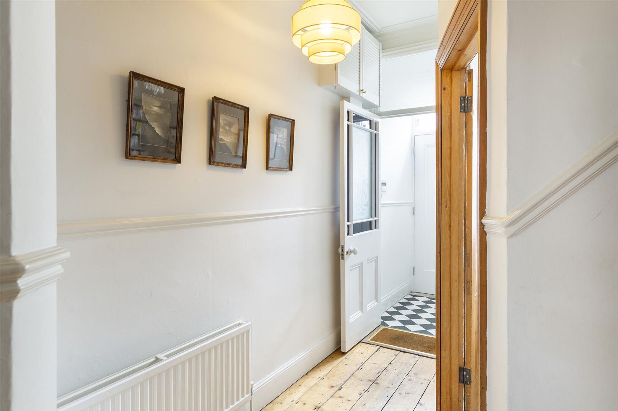 The ground floor accommodation comprises; main entrance and vestibule leading into the hallway with stripped wooden floorboards and storage cupboard in located at the end of the hall. At the front of the property is the lead reception room with bay window featuring timber framed sash windows, a cast-iron fireplace with period surround, built-in alcove shelving, a ceiling rose, cornice and picture rail. Next door the second reception room features a walk-in cupboard underneath the staircase, an original period dresser and cupboard, stripped wooden floor and a timber framed sash window that overlooks the kitchen extension and allows for plenty of natural light.