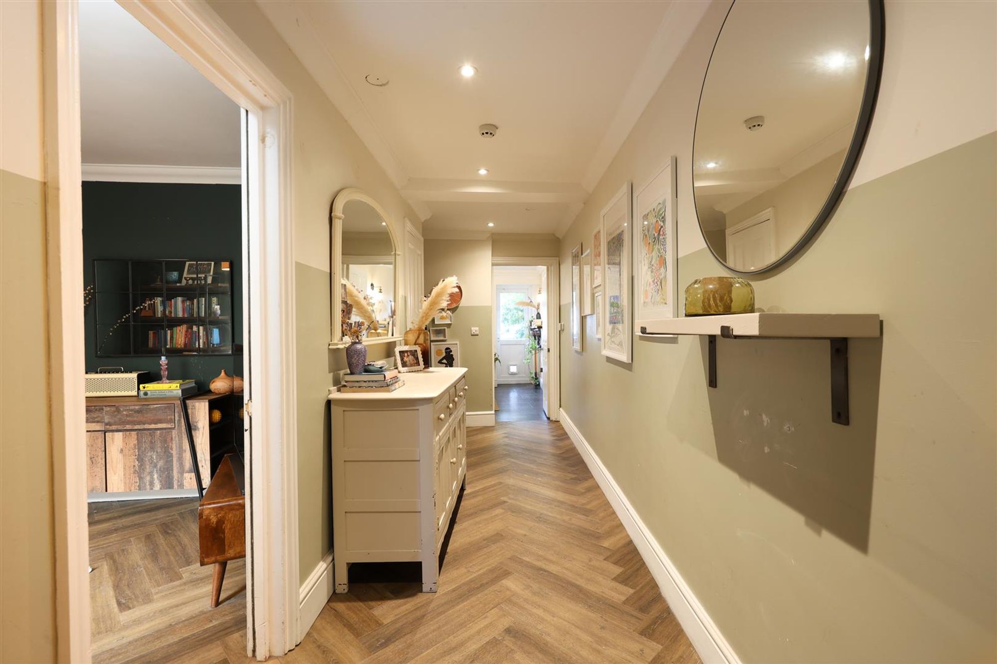 Internally the accommodation comprises a private entrance hallway leading onto the main bedroom complete with an en-suite shower room, sash window and period cornice (please note that this bedroom is currently used as an additional living room space). A staircase then leads down to the second bedroom where you will also find a separate shower room. This room feels light and bright thanks to a panel glazed wooden door which opens directly out onto the lower level of the rear garden.