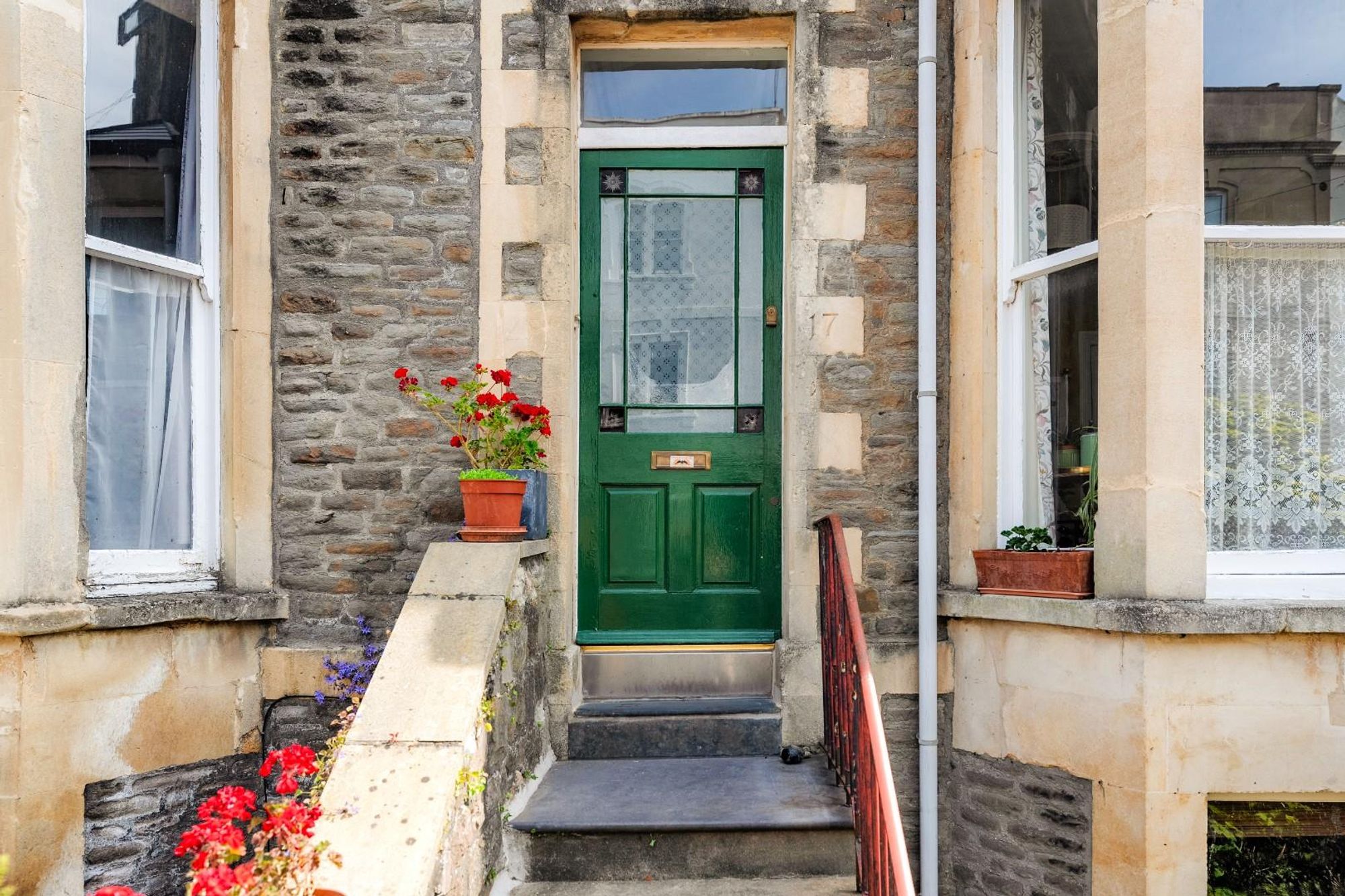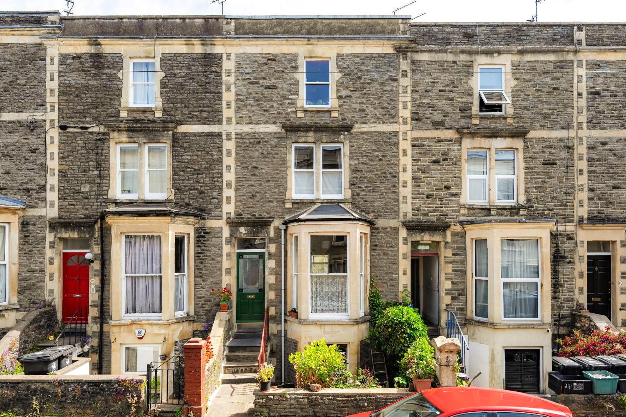 A handsome, bay-fronted Victorian townhouse on a residential street in Redland, arranged over four levels with an appealing combination of original period features and versatile living space. The house is set back from the pavement with steps leading up to the raised ground floor entrance.
