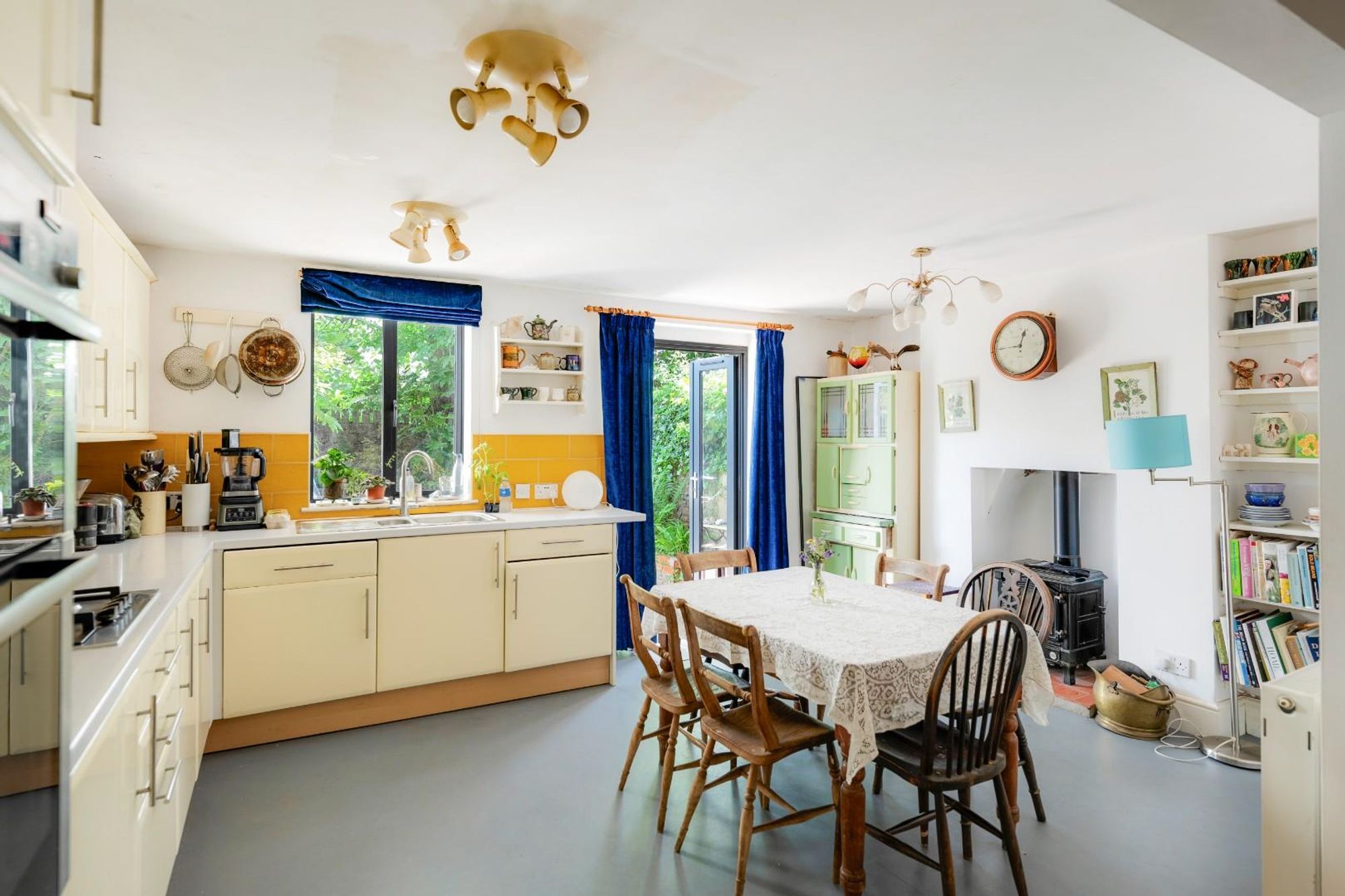 The room has space for a large dining table and a log burning stove in the original fireplace is a welcome addition.