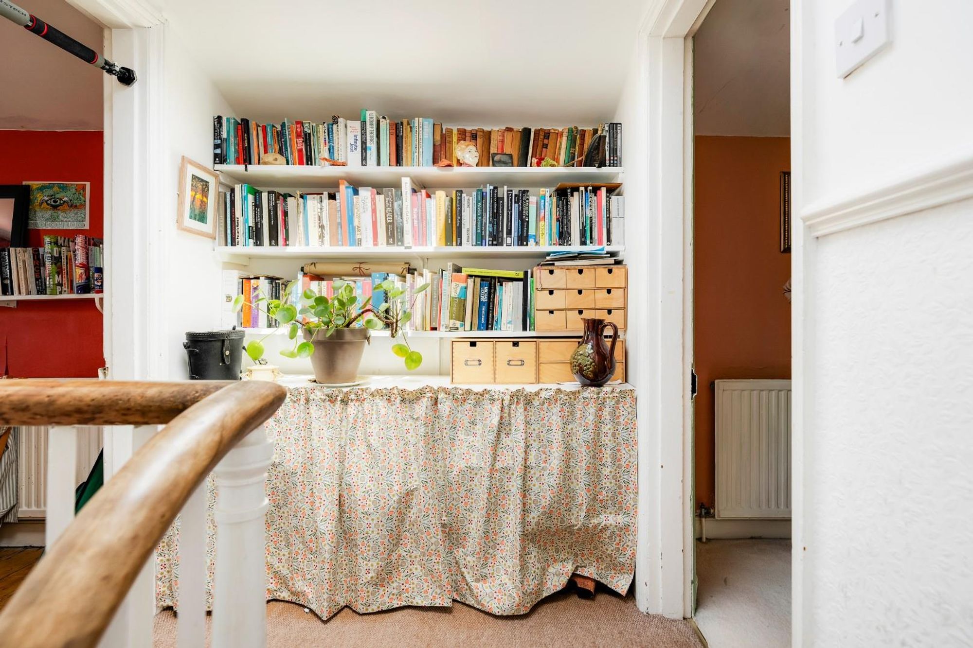 The rooms are very adaptable and have fitted in many friends and visitors, while at the same time giving enough space to get away from one another. The light in the back of the house is beautiful in the morning, and floods the front rooms in the evening. The back garden is a leafy sanctuary and home to a well looked after tree. From the top back bedroom you can watch at eye level the birds building their nest each year.