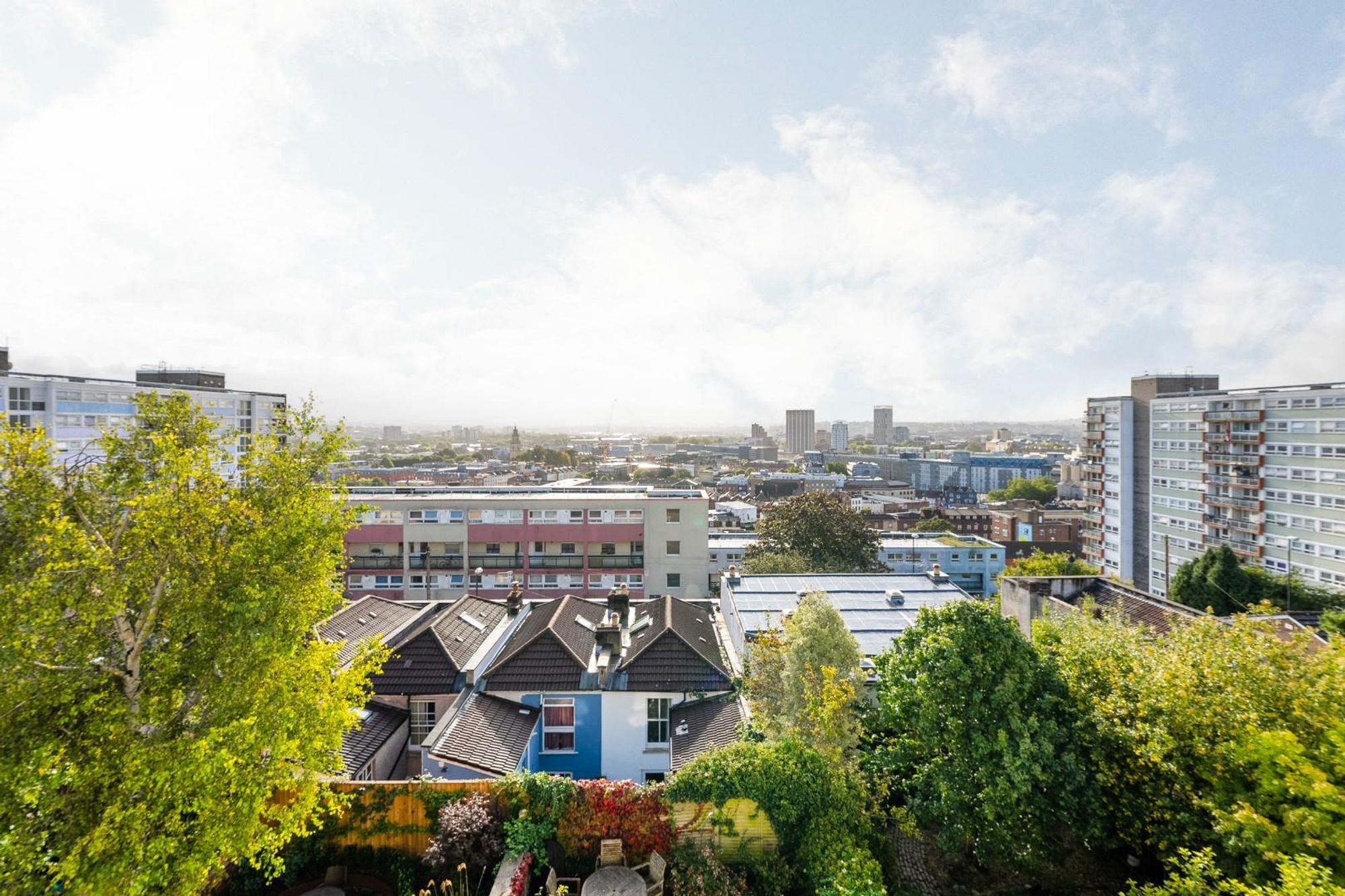 Arranged over the three original storeys and a more recently converted attic space, the house has large windows with impressive views over the cityscape below.