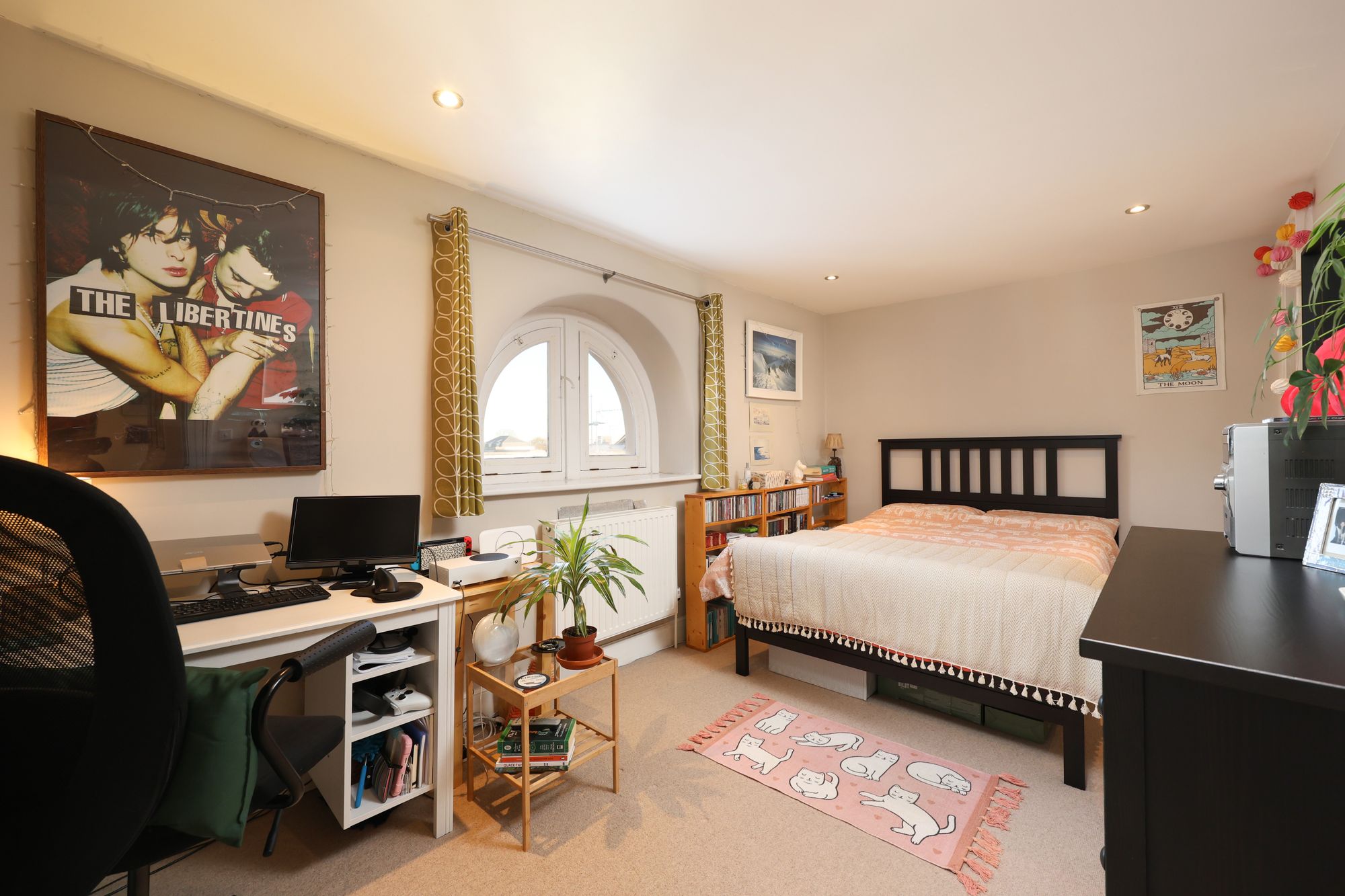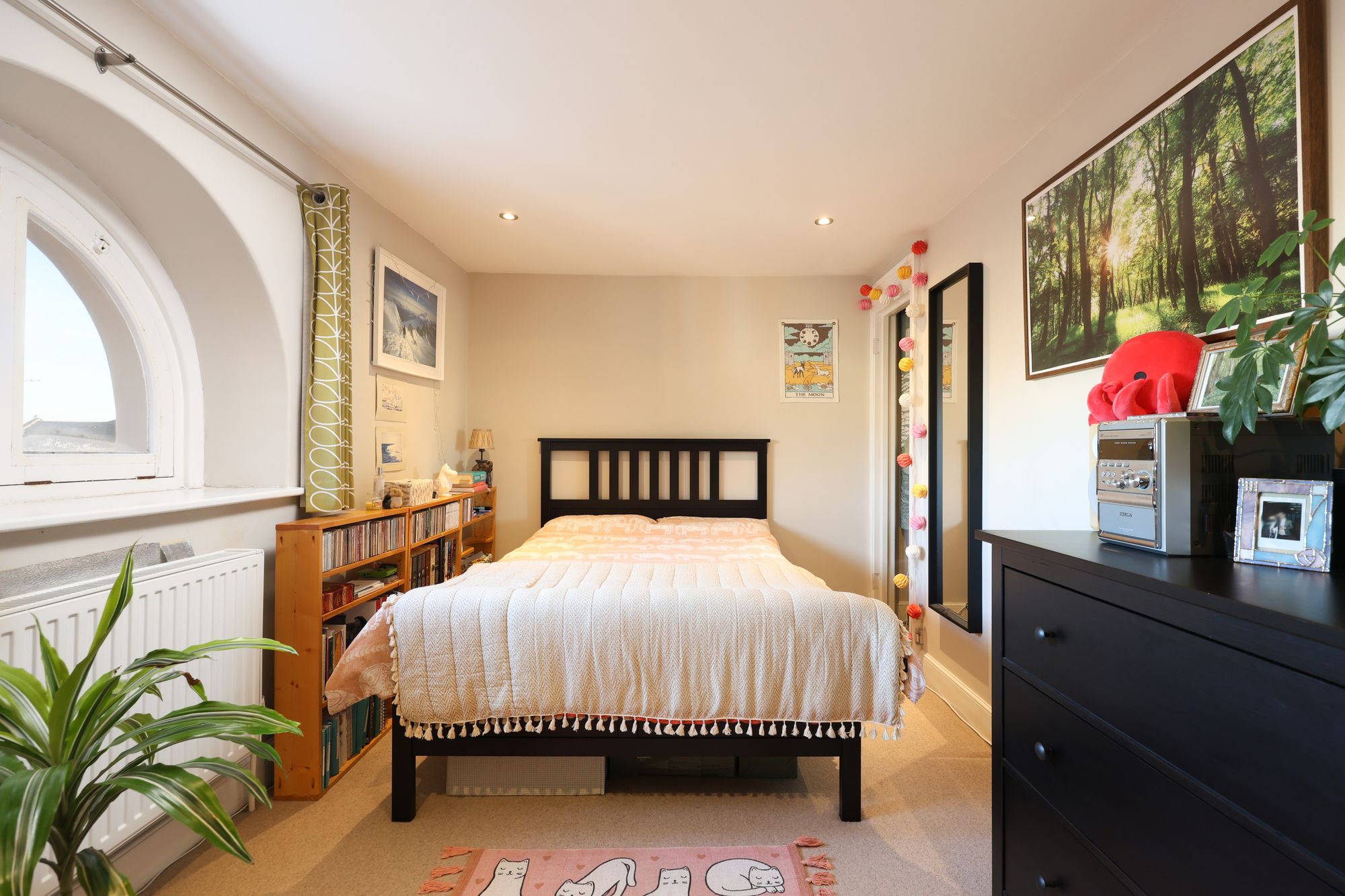 • Well-sized bedroom with arched window