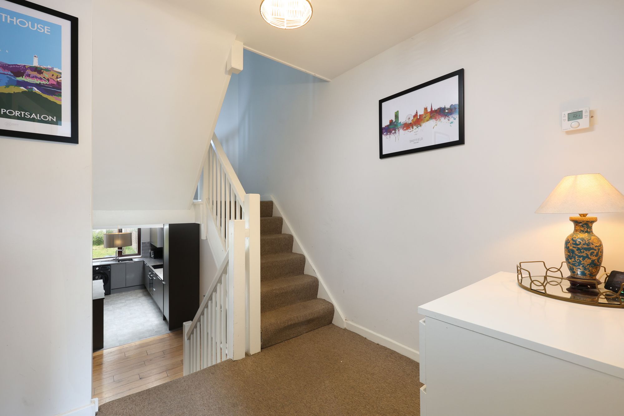 On the first floor are three bedrooms and a family bathroom. Bedroom one is located at the front of the property and spans the full width of the house. Across the landing, bedroom three is also a double with built-in wardrobes and benefits from views over the rear garden, whilst next door, bedroom four shares the same outlook and is currently used as a home office. Finally, completing the accommodation is a smartly finished family bathroom with a modern white suite and stainless steel fittings, floor to ceiling tiled splash-backs and a tiled floor.