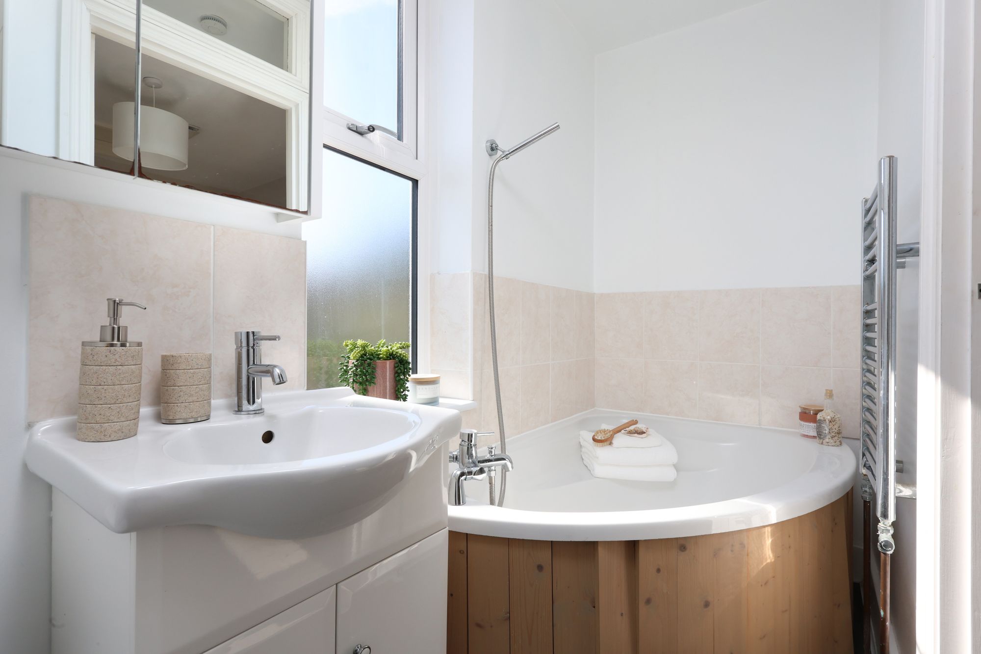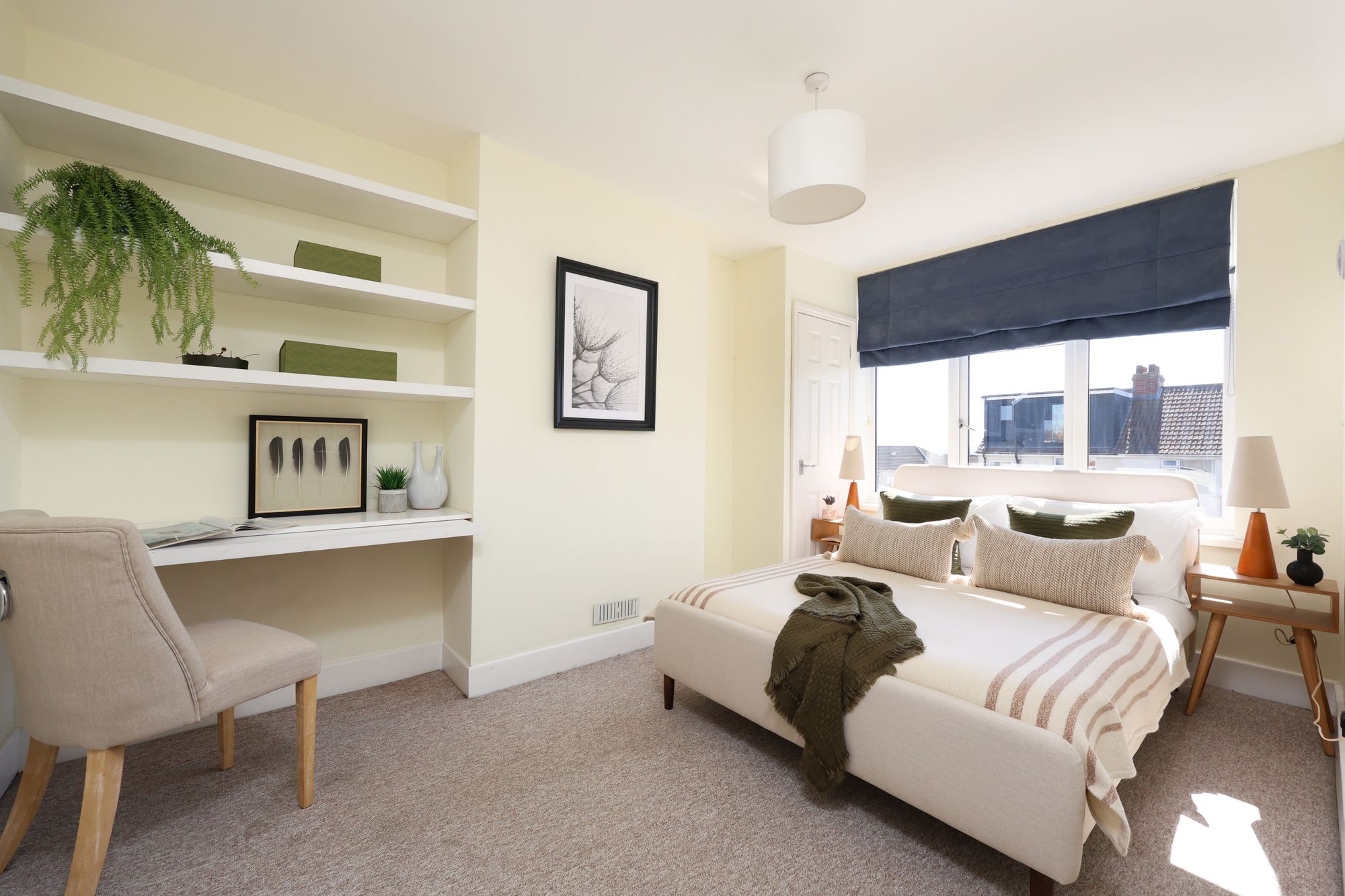 A staircase leads up to the first floor to three bedrooms and a family bathroom. The generously proportioned master bedroom is located at the front of the house and looks out across to neighbouring houses via a large double glazed window, whilst bedroom three is adjacent and is currently utilised as a home office. At the rear of the floor, bedroom two also features generous proportions and benefits from a green and leafy outlook over the rear garden. Finally, completing the accommodation is a smartly finished family bathroom that features a modern white suite with stainless steel fittings, tiled splash-backs and a heated towel rail. There is also an opportunity for any potential buyer to add to the footprint by extending into the loft space subject to the usual consent.