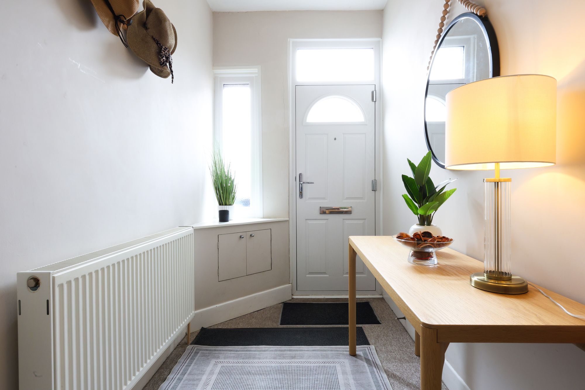 Accommodation comprises; A generous entrance hallway providing access to all ground floor rooms. At the front of the property, the living room features double glazed box bay window, cornice and a cast-iron wood burning stove with exposed chimney and period surround.