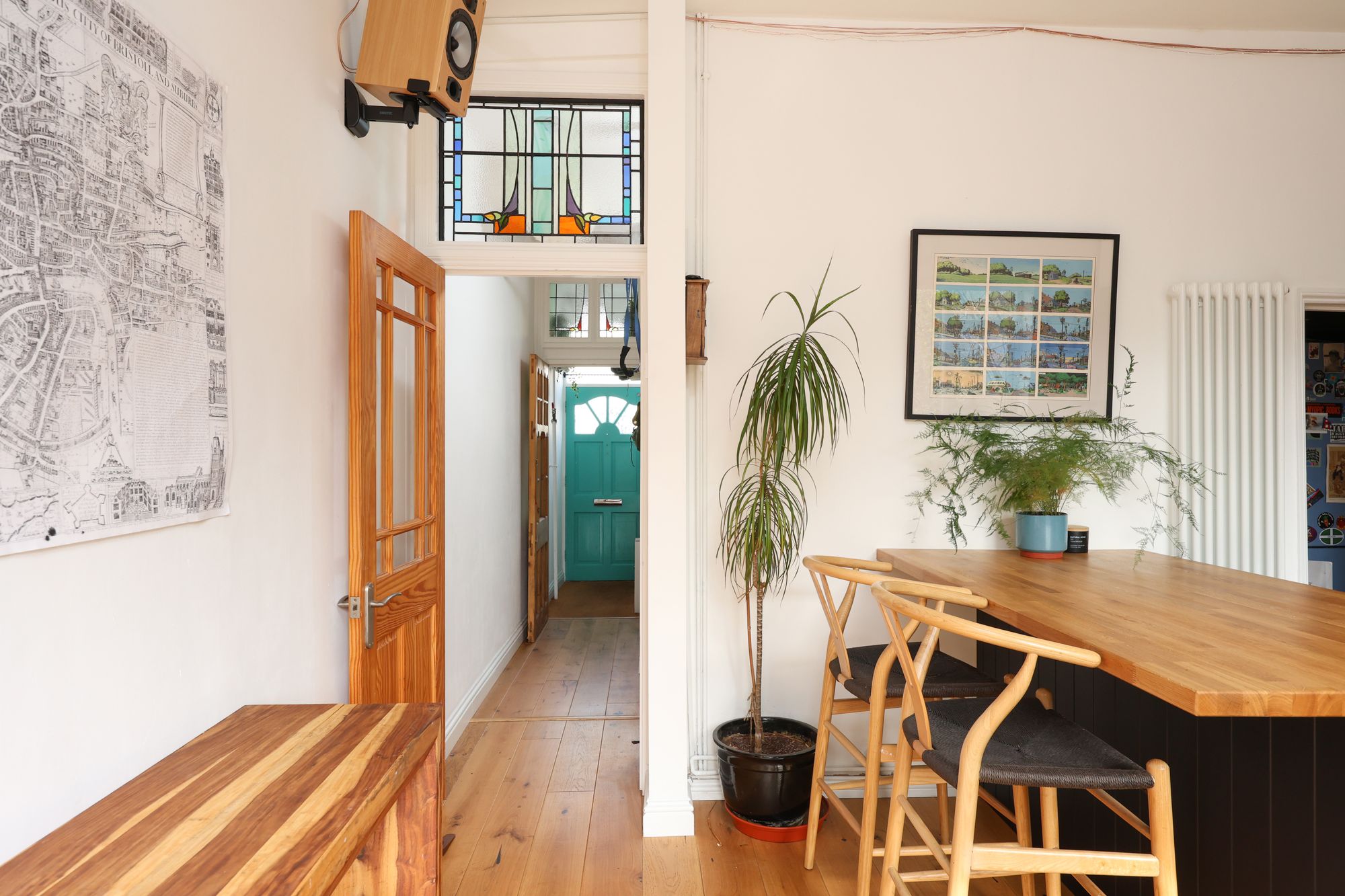 Tucked away in a prime central location, this beautifully updated two-bedroom terraced house offers a welcoming blend of classic charm and contemporary style, making it the perfect place to settle in and enjoy all the benefits of modern living and is sold with no onward chain. Step through the front door and you are greeted by a bright and airy hallway that leads you into the heart of the home, where solid oak floors create a sense of warmth and continuity throughout the ground floor. The open plan kitchen diner is a real highlight, designed with both every-day living and entertaining in mind. Sleek cabinetry, integrated appliances, and generous worktop space make meal preparation a pleasure, while the adjoining dining area is ideal for relaxed family meals or catching up with friends over coffee.