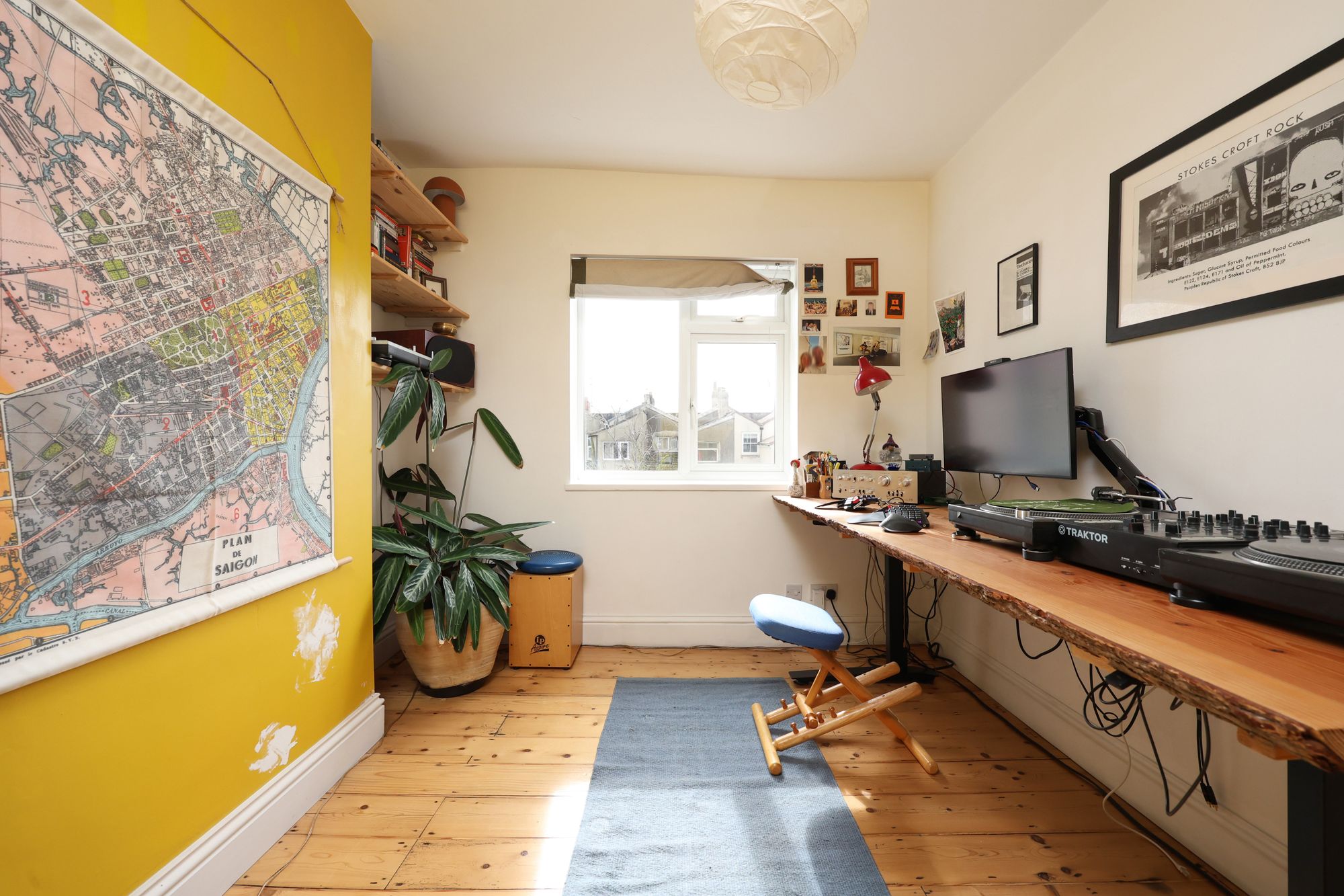 Upstairs, you will find two well-proportioned bedrooms, each thoughtfully decorated to provide a restful retreat. The main bedroom is particularly impressive, offering ample space for a king-size bed and additional furnishings, while the second bedroom is perfect as a guest room, nursery, or home office.
