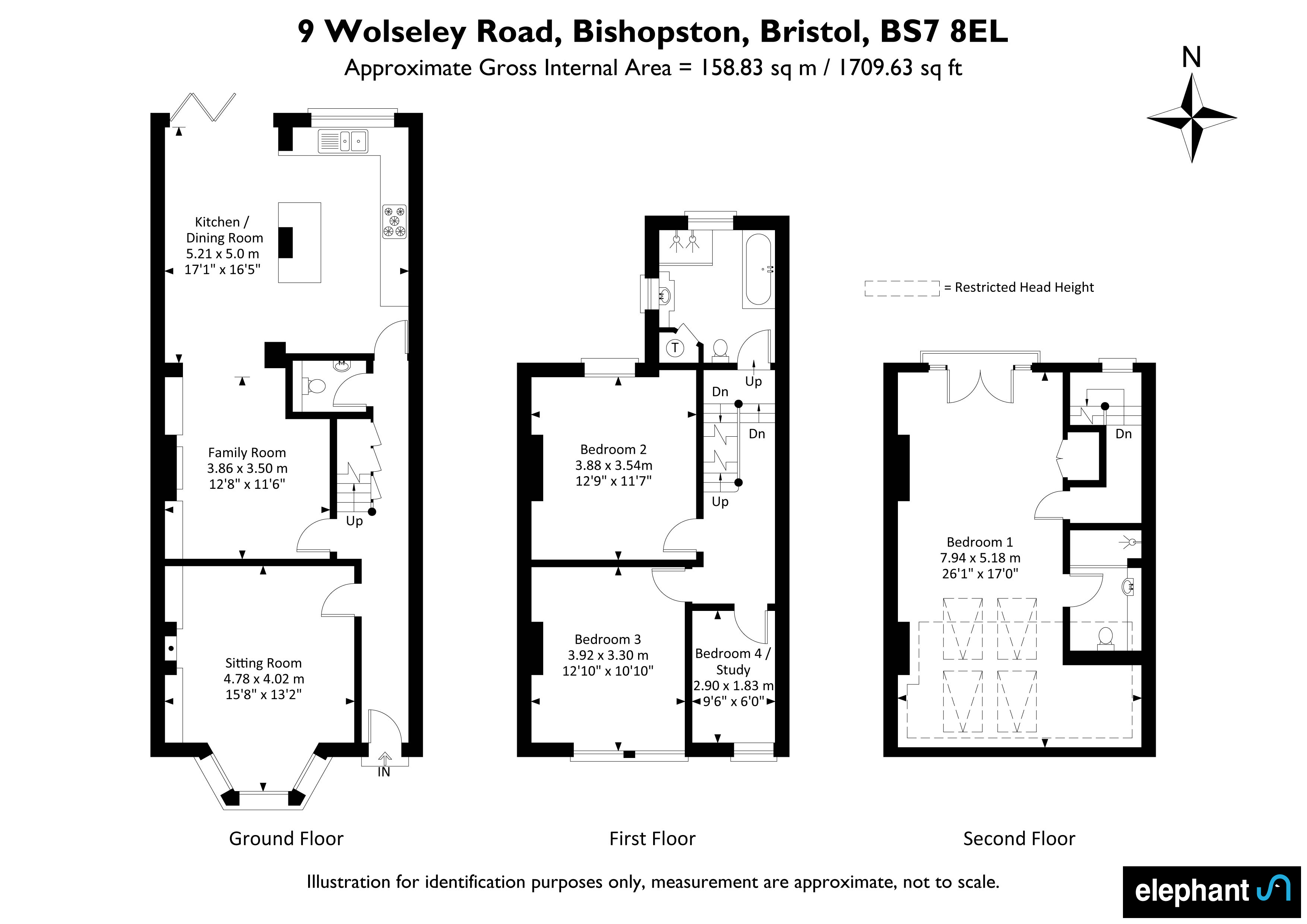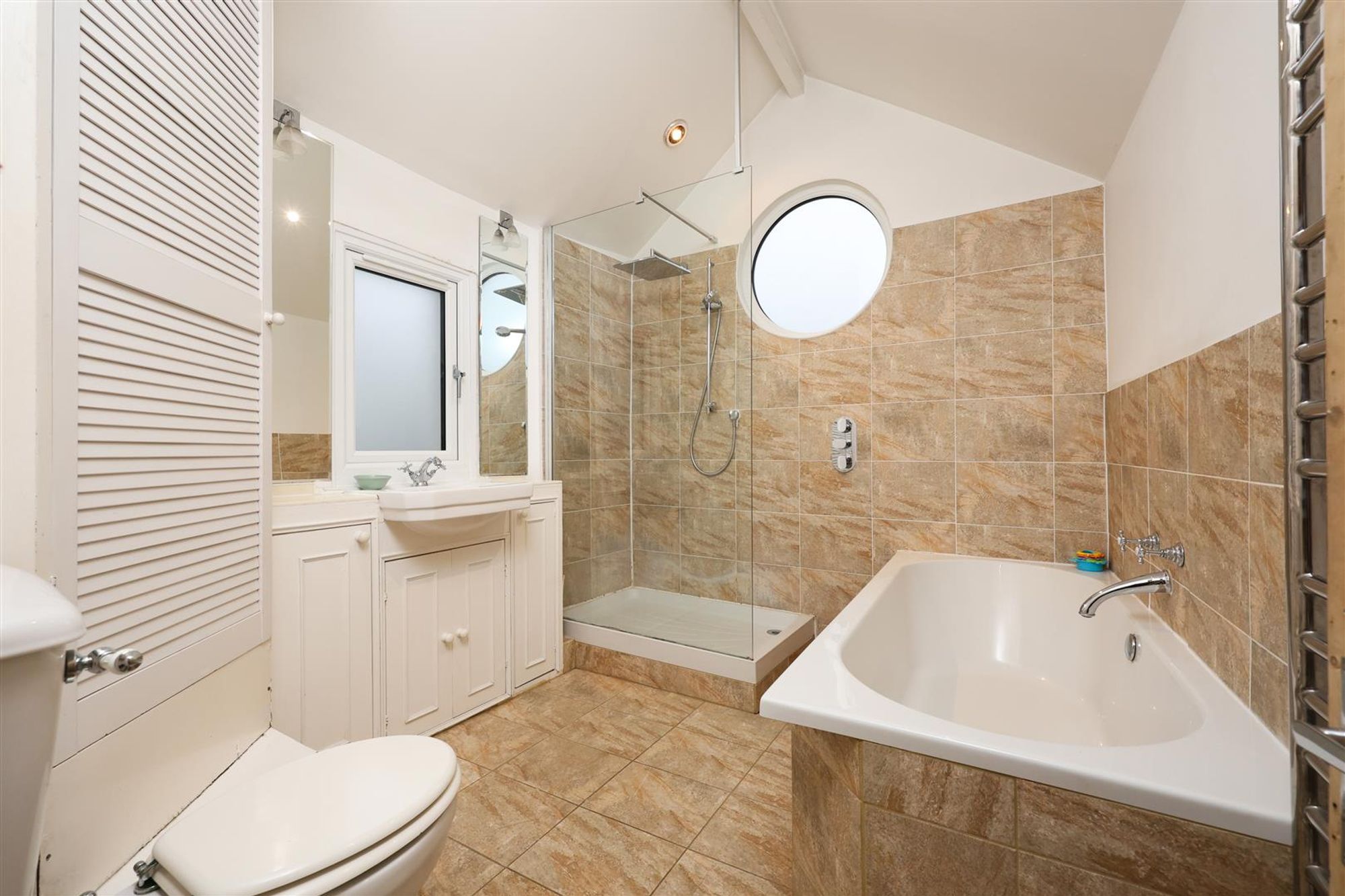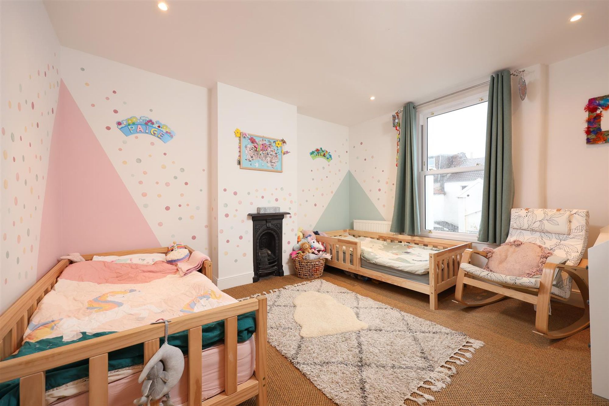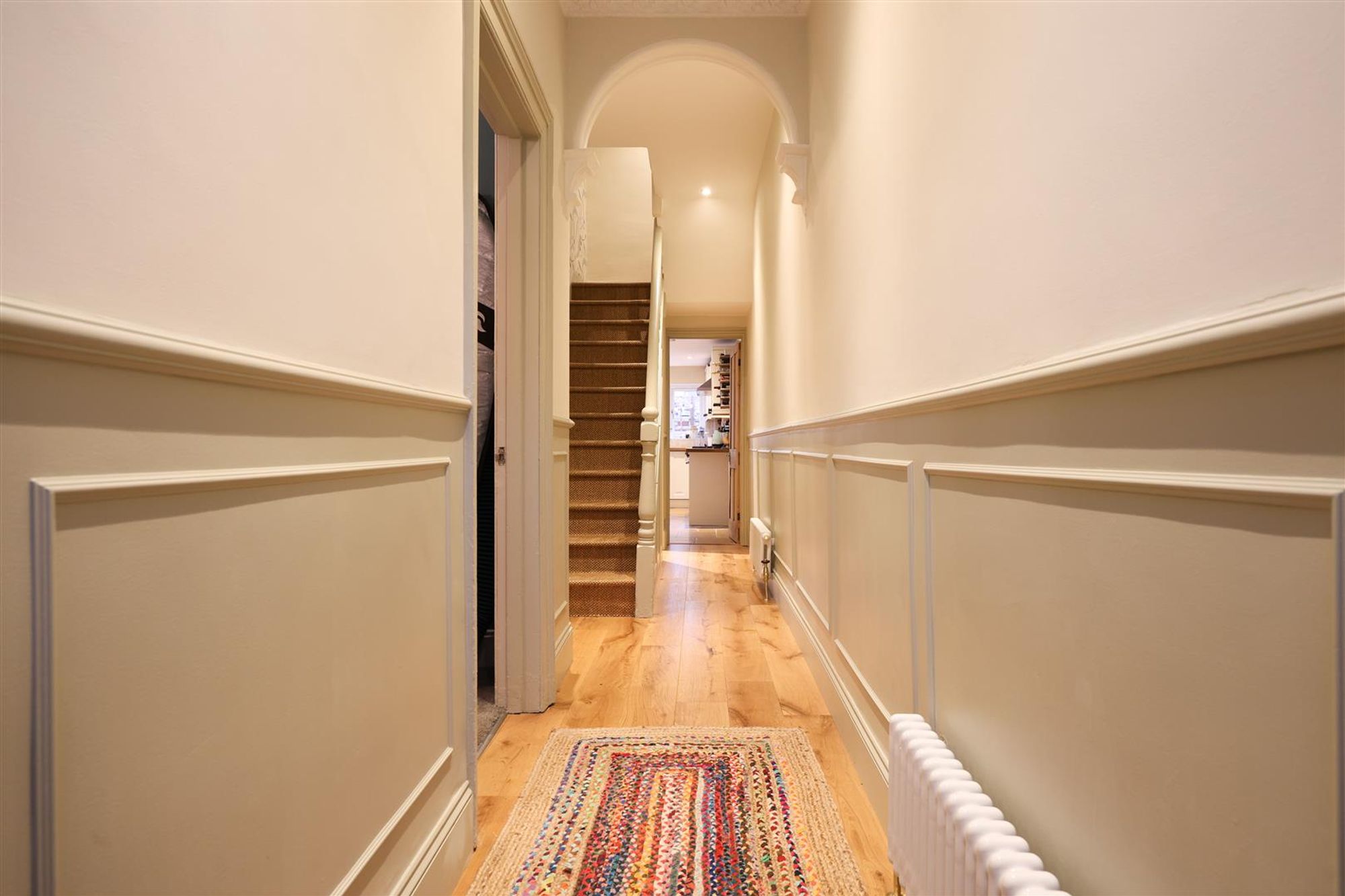 On the first floor are three bedrooms and the family bathroom. Bedroom three is located at the front of the house and benefits from a pleasant view over Wolseley Road via two double glazed sash windows. Adjacent, bedroom four shares the same outlook and is currently utilised as a home office. In the middle of the floor, bedroom two is another well-proportioned double that overlooks the rear garden. The room has an original cast-iron fireplace and has been beautifully finished as a children's bedroom. A spacious family bathroom completes this floor and features a vaulted ceiling with distinctive porthole window. Further features include a modern white suite with stainless steel fittings, separate walk-in shower, a heated towel rail and a tiled floor.