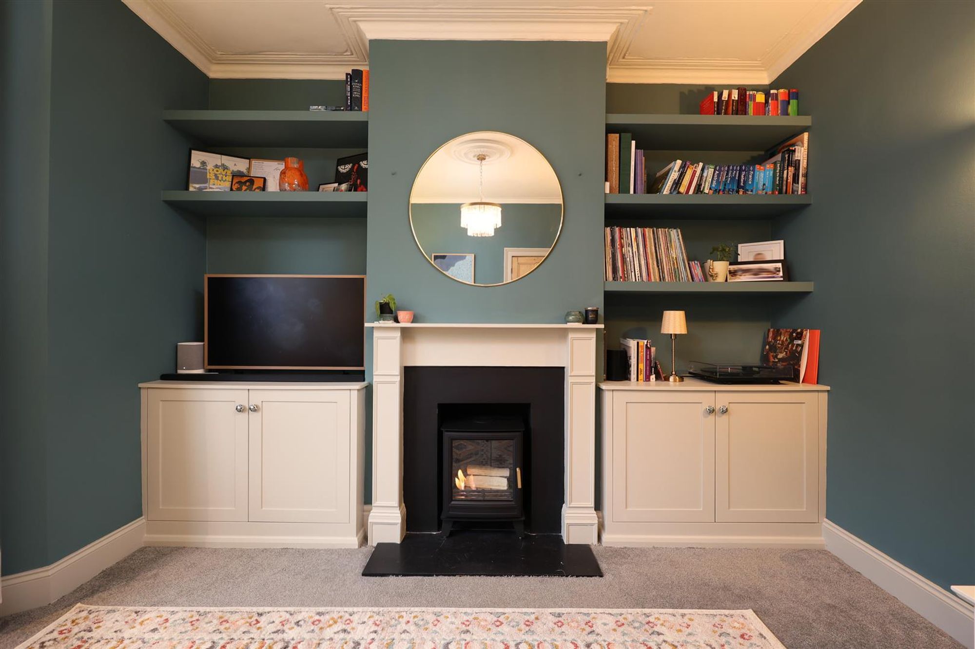 The ground floor accommodation comprises a main entrance leading into the hallway complete with panelled walls, an insulated oak floor, sisal stair carpet, and a downstairs W/C located underneath the staircase. At the front of the property, the living room features a bay window fitted with UPVC double glazed windows, louvered style shutters, ornate cornice, ceiling rose and bespoke fitted storage within the alcoves.