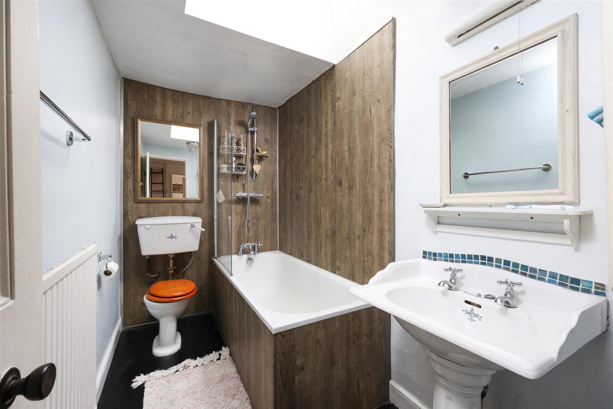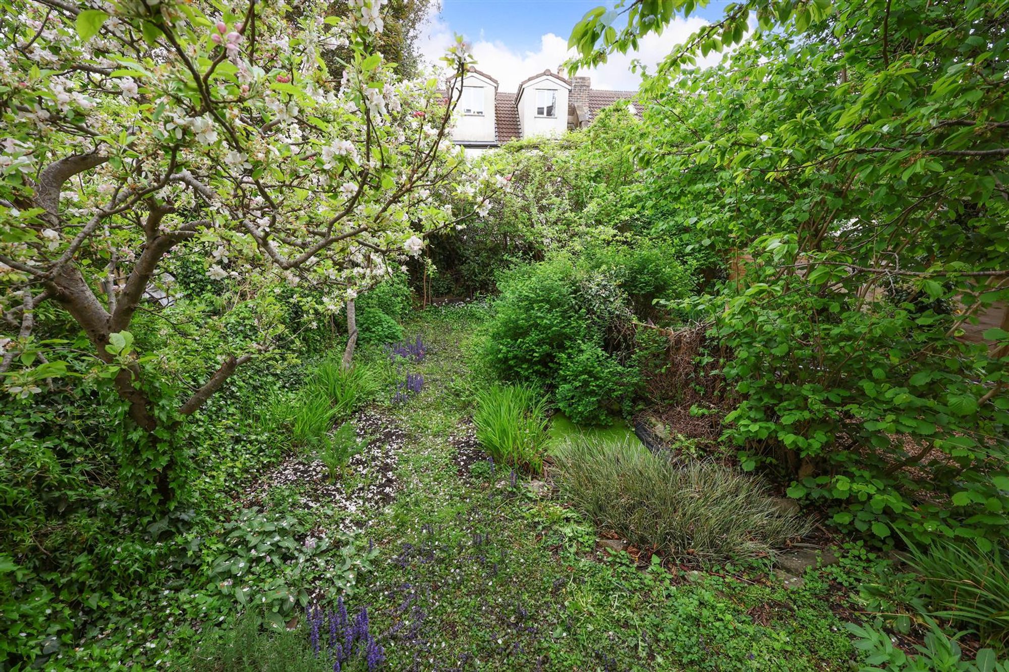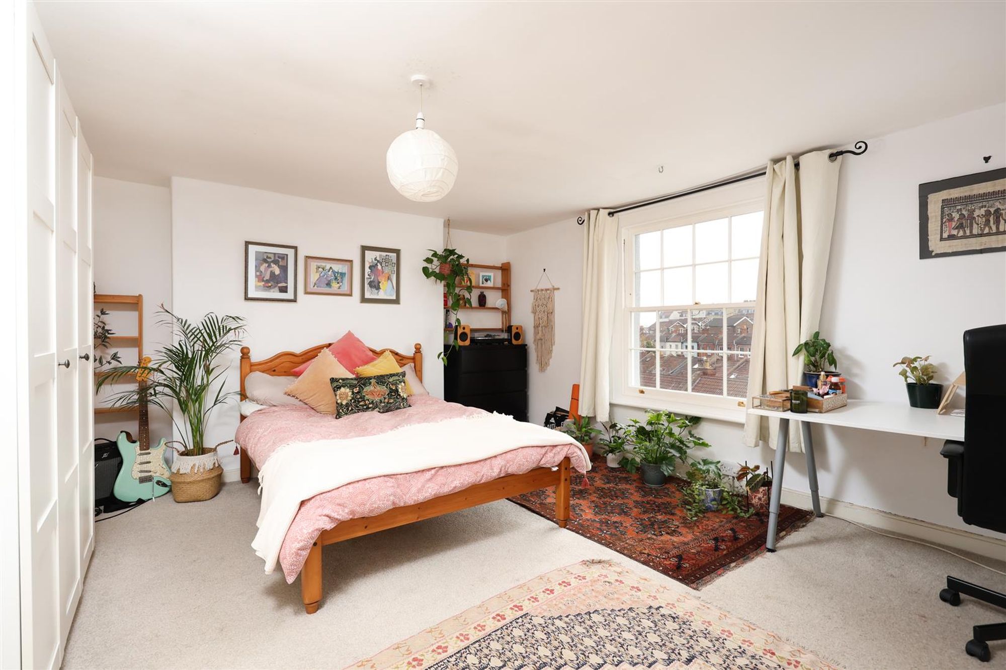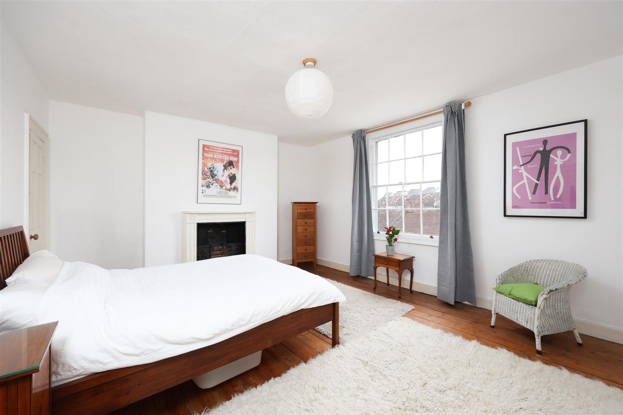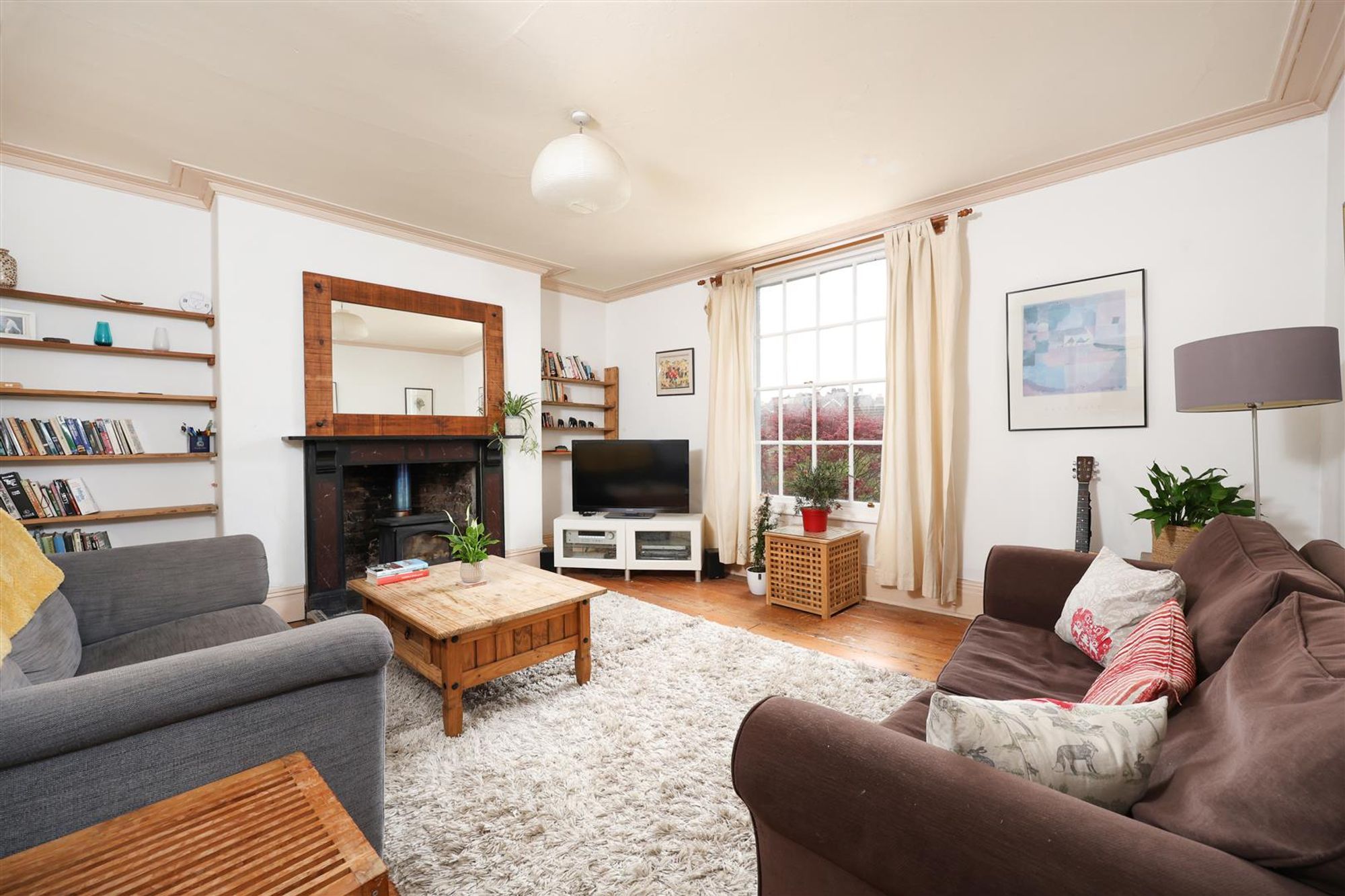 The bathroom is flooded with light thanks to a large skylight above the bath. The third bedroom located at the front of the property features stripped wooden flooring and a period fireplace and storage cupboard. The final bedroom features elevated views over the rear garden and Montpelier via a large sash window and more built-in storage.