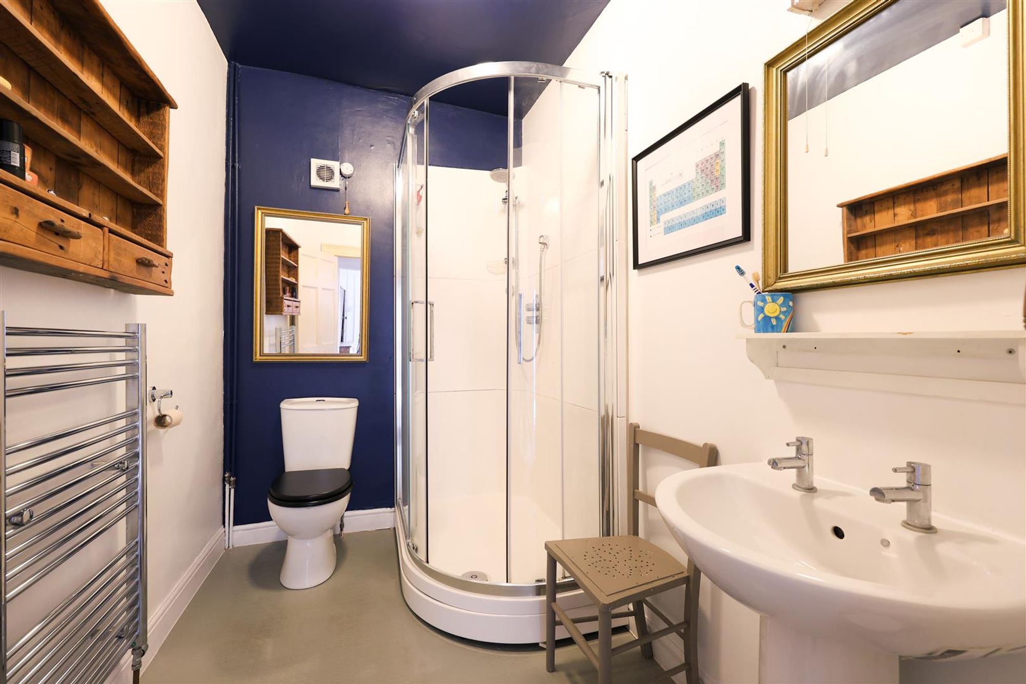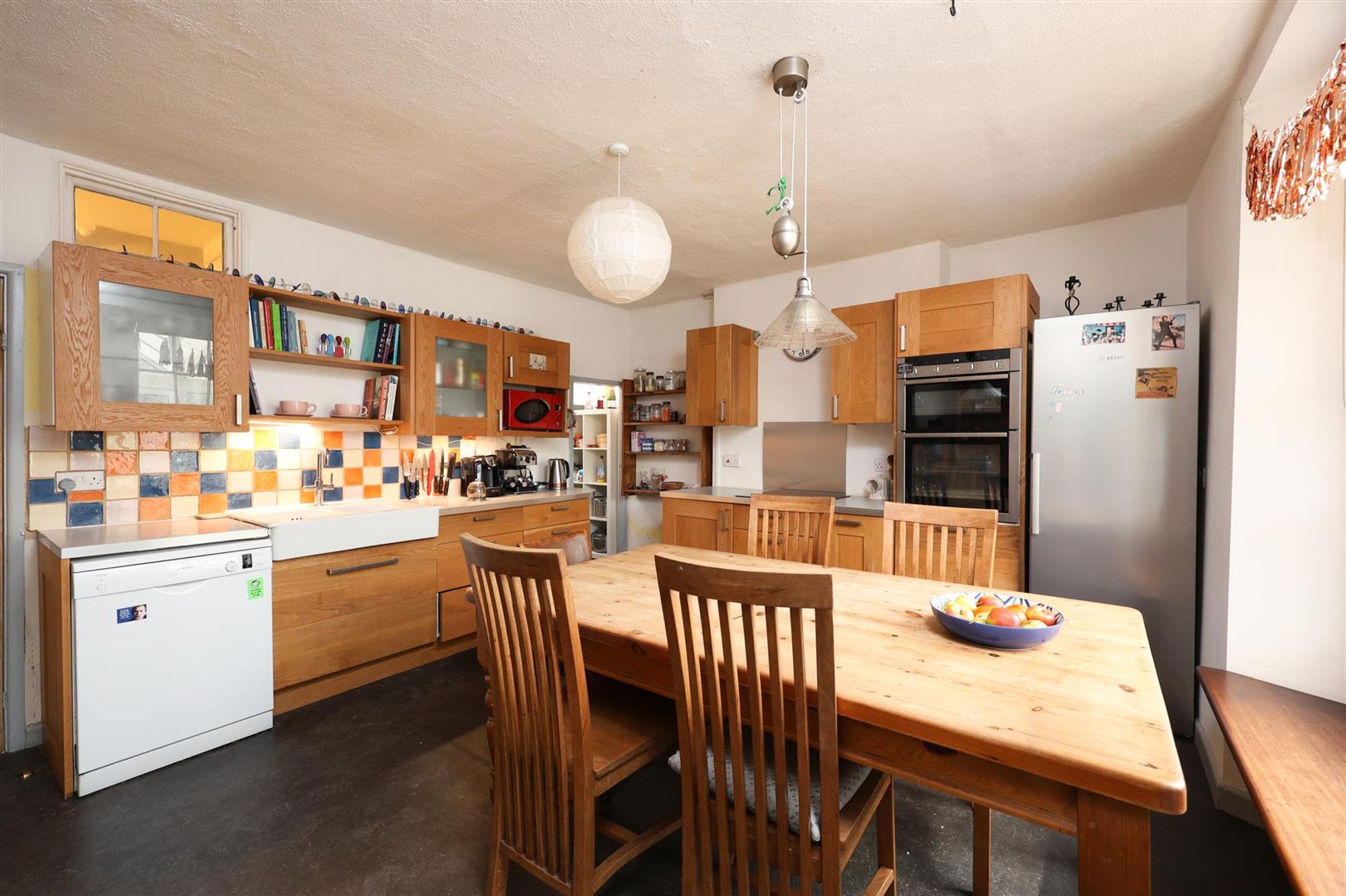 As you enter the property, you have the two sitting rooms, at the front of the property the first sitting room features original stripped wooden floors a period fireplace, alcove shelving, a generously sized storage cupboard and a large sash window which fills the room with natural light. To the rear of the property is a larger sitting room again featuring stripped wooden floors, a period fireplace, a large storage cupboard and a large sash window overlooking the garden.